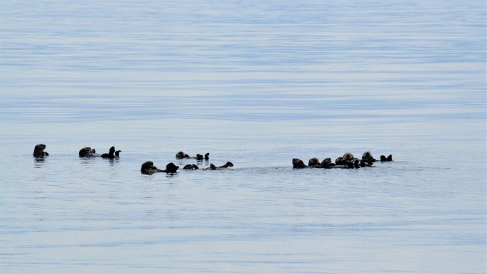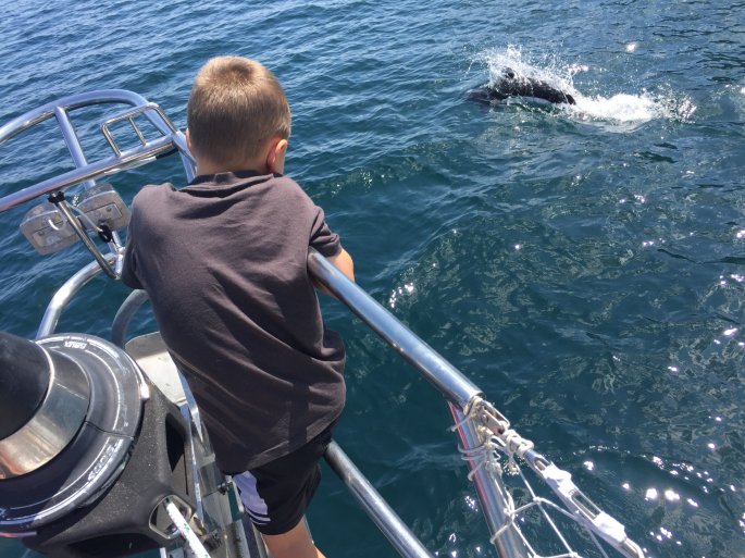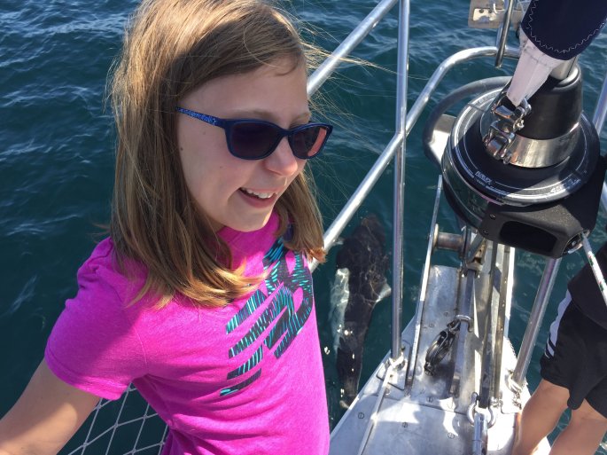 As we made our way south we encountered our final glimpse of sea otters for this trip but also got to experience 2 Dall’s Porpoises riding in our bow wake. The kids were enchanted with their playful antics as they crossed from one side of the bow to the other hopping out of the water as they did so. We probably see Dall’s Porpoises 75% of the time we leave the dock but they are often far from the boat and all you see is their dorsal fin gliding in and out of the water as they hunt. This was first for me and the kids and Dan had not experienced this playful activity from them since he was a kid. They look like a miniature orca that swim and move like a dolphin.