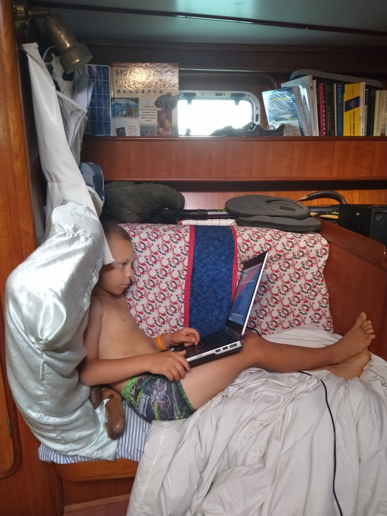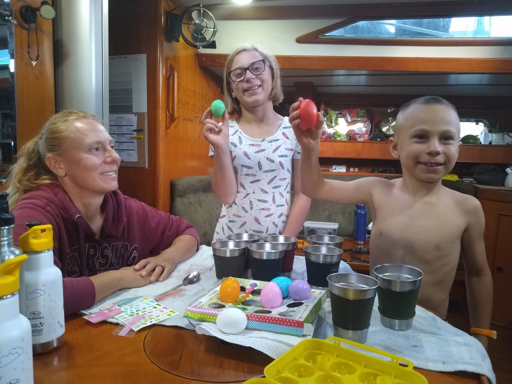 As I have said before, we are not the only ones on the island. Many cruisers are using this island as their place to ride out the closures caused by the virus. Many others are using this island as a temporary stop over on their way to destinations farther north in the sea. We were lucky to have friends from S/V Tulum V stop by for a visit. They are on their way farther north in the sea. While they were provisioning in La Paz they reached out and asked if they could bring us anything. We were running a little low on fresh apples and sour cream so we place our order. On their way north they stopped in for a short visit and dropped off our apples. They had only just left La Paz and we had been isolated for our 14 days so we all thought it best if we did not intermingle. We were able to chat for quite some time with them on their boat and the four of us in our dinghy. It was great catching up and we look forward to meeting up with them in the coming weeks when we will follow in their wakes farther north into the sea. We have other friends on S/V Decision who are on their way to the Mexican mainland to meet up in Bara Navidad with our mutual friends on S/V Prairie Fox. While Ashley was in San Diego she picked up some parts for Prairie Fox and we have had them with us ever since. And since S/V Decision is headed their way we decided to meet up so that we can pass the parts along. S/V Decisions kindly asked us if we needed anything before they left La Paz so we placed another order for apples. Apples again you ask? Yes apples. You see, Victoria and Alexander will eat four apples a day if we let them. That was not clear enough. That is four apples a day for EACH of them. We have been rationing them to one apple a day for two days and then, heaven forbid, one day of no apples. Now that we are resupplied the great apple ration of 2020 is temporarily suspended much to the delight of Victoria and Alexander. We did not tell them that S/V Tulum was bringing apples just that they were bringing us a treat. When they saw that what they brought was apples you would have thought it was Christmas morning. So thanks to the kindness of our amazingly thoughtful friends we are able to maintain fresh food supplies and keep from reaching into the freezers or for any canned fruits and vegetables.