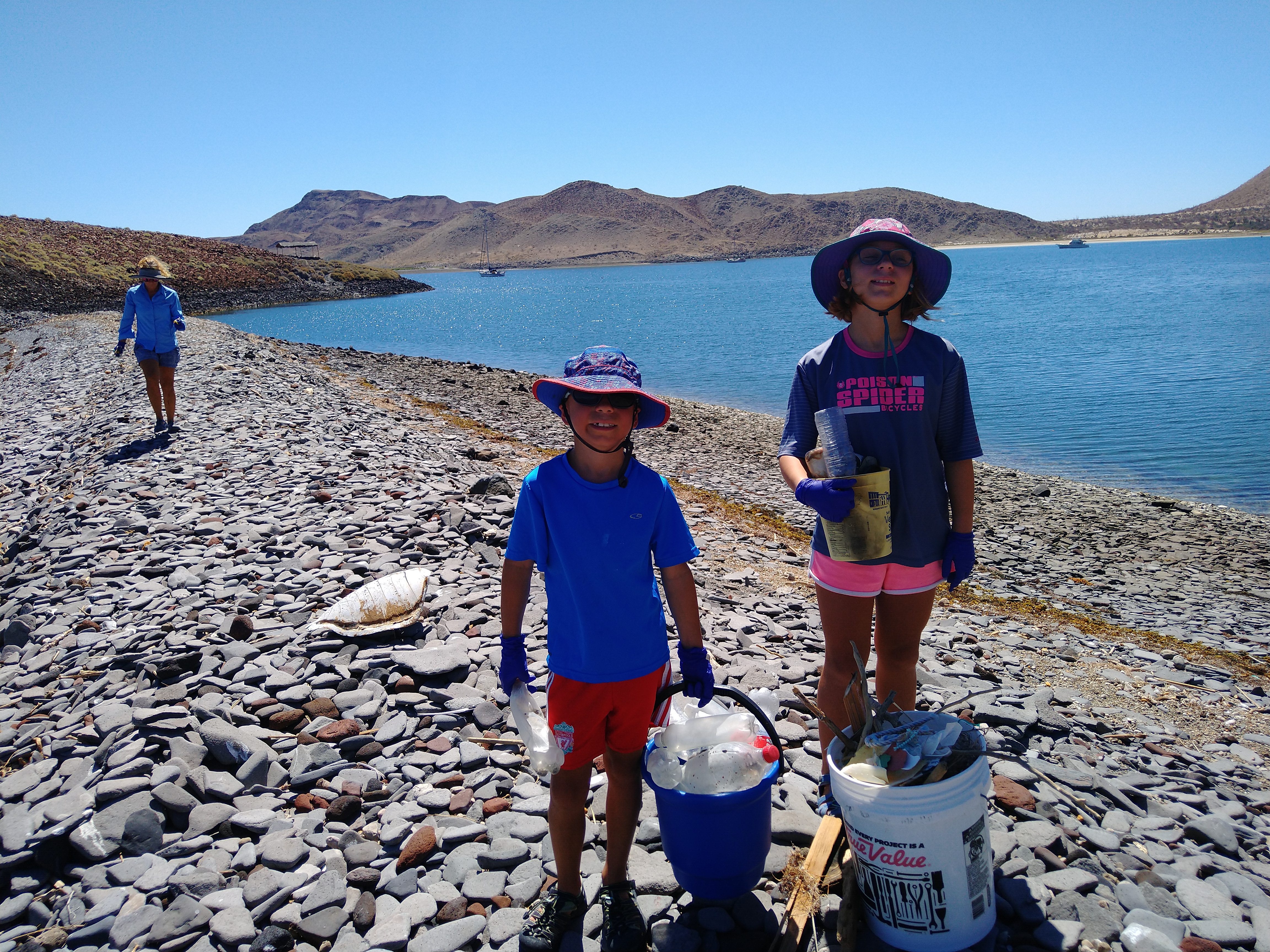 We arrived in the Bay of LA and found a beautiful and extremely protect hurricane hole just as was described in our cruising guides. We spent a few days in this bay exploring the cliffs and arroyos and trails. We also spent one of the days cleaning up a beach that was littered with debris, most of which was plastic. We then made our way to the small fishing town of Bay of LA. Here we found a restaurant that had Wi-Fi so we ate dinner and lunch there as we made plans for the summer. After our plan was hashed out and the details ironed out we picked up anchor and headed to an anchorage that is reported to be visited by whale sharks.