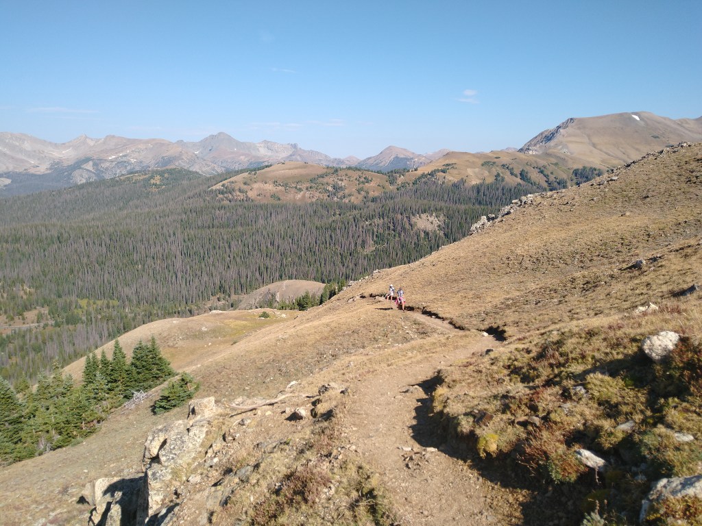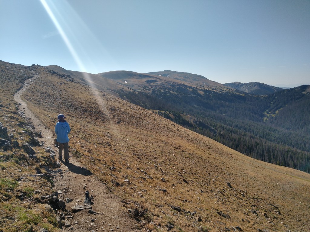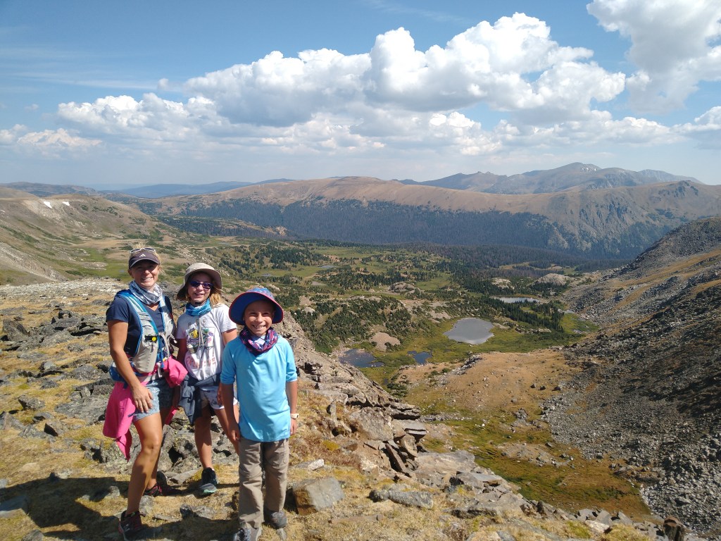 Rocky Mountain National Park is only a 20 minute drive from our campground. Due to the Covid Pandemic the park is requiring reservations to visit the park. That includes if you just want to hike the trails. Reservations have to be made days in advance and there are a limited number of them. There is a loop hole if you can wake up early. If you arrive before 6 am you do not need a reservation. I asked Victoria and Alexander what kind of hike they wanted to do. Their options were a peak, a waterfall or an alpine lake. They both agreed that a waterfall and lake will have more people so they chose a peak. They also liked the idea of hiking to higher elevations than we have in the past. Rocky Mountain National Park has many peaks that can be hiked to that have elevations over 12000ft. So we chose a hike that was 8 miles long with a peak that was 12300ft high. We woke up at 5am and were in the car by 530am. We drove through the open gate at 550am just in time. It would have been a little tough if we had gotten up early for nothing had we not beaten the 6am deadline and been turned around. We drove through the park and as we approached our turn to the trailhead that we planned to hike we saw that the road was closed. There was a detour so we followed the signs. However, the signs led us out of the park only to come back using another entrance. This normally would work just fine but this time we could not get back in because it was now after 6am. So we searched for another hike. All of the visitor centers were closed either due to covid or due to the early hour. Our phones did not have any service either. We found a large map on a wall of the park and it showed where the Continental Divide trail crossed the road. So we headed to the intersection. At the parking lot for access to the Continental Divide trail we saw a map that showed a trail that goes to Ida Mountain. So we set of for Ida Mountain not knowing how far or how high it was. The trail began climbing immediately. That would not normally be too much of an issue but here we were already at 10000ft elevation so we all felt the thin air in our lungs and the along with the burning in our legs. After .5 miles we came to a sign that said Ida Mountain was 4.5 miles away along with another sign telling us to be aware of lightning on the upper ridges. It said that if there was dark clouds in the sky consider turning back. Ashley and I looked up to the sky and saw nothing but blue sky and a few white puffy clouds. We had been experiencing thunderstorms this last week but they normally did not start until late in the afternoon. So up to Ida Mountain we went. The hike was stunning. We climbed above the tree line and had close up views of the Rocky Mountains in all directions. Soon there were multiple alpine lakes in view 1000 ft below us. We passed a small herd of mule deer that would have made a deer hunters year. Alexander and Victoria saw their first Yellow Bellied Marmot in the wild and were so delighted we watched it forage for 5 minutes just off the trail. Soon, however, there were marmots around every corner watching us as we hiked by. There were even two of them that decided we were zero threat so they made no move to leave their rock as we passed by them less than 8 feet away. As we neared the top and the final slopes of Mount Ida we came into a field of slate rock with 100’s of American Picas. These super cute little creatures had the kids smiling as they went in and out of the rocks we were hiking upon. The kids and I joked that they were encouraging us up the mountain. It was really a wonderful experience with the picas all around. Their squeaks were like a chorus of picas welcoming us to their alpine home. After reaching the top we gave our legs and lungs a much needed break as we ate some snacks. We took some pictures and headed back down. Ashley and I were conscience of the thunderstorms that had been developing late in the afternoon, so we were anxious to not be around at that time. We started down the mountain at just before noon underneath blue skies. Now keep in mind there are absolutely zero trees or bushes around, we are walking on alpine tundra. If lightning comes there is nowhere to hide. And as you can see where this is going the weather was about to take a turn for the worse, the much worse. After making our way down the slate rock slopes for about 30 minutes we all jumped at the sound of crashing thunder. We looked to our left down the mountain and saw a dark cell of clouds making its way up the valley in the direction we were walking. Seconds later a huge bolt of vertical lightning flashed just to our left. We counted the seconds until the next thunder and it was 4 seconds. Not good. We were completely exposed on the side of a alpine tundra mountain with two even more exposed tundra saddles to cross. We quickly decided to find a depression to hide in until the cell passed. We found a good safe spot about 30 meters off the trail and settled down to wait out the passing of this one cell. We pulled out our warmer clothes in anticipation of losing any heat that we had accumulated on the climb. Just as we pulled on our jackets the rain and wind began. At first just light rain, yet as the wind quickly increased so did the rain. And then the rain turned to hail. This nice rest in a depression while this ONE storm cell passed was not looking like it was going to be the case. We watched as dark clouds began to form in all directions as the temperature quickly dropped. We had light rain gear, pants and sweatshirts so we did not get too cold but the wind was increasing and there did not look to be an end in sight. We also were 3.5 miles away from the protection of the trees. I was beginning to get worried that we would get too cold to be able to move the 3.5 miles quick enough to get to safety. So after we had a 5 minute break in the thunder I told the kids to eat as much as they needed and drink as much water as they could. They w