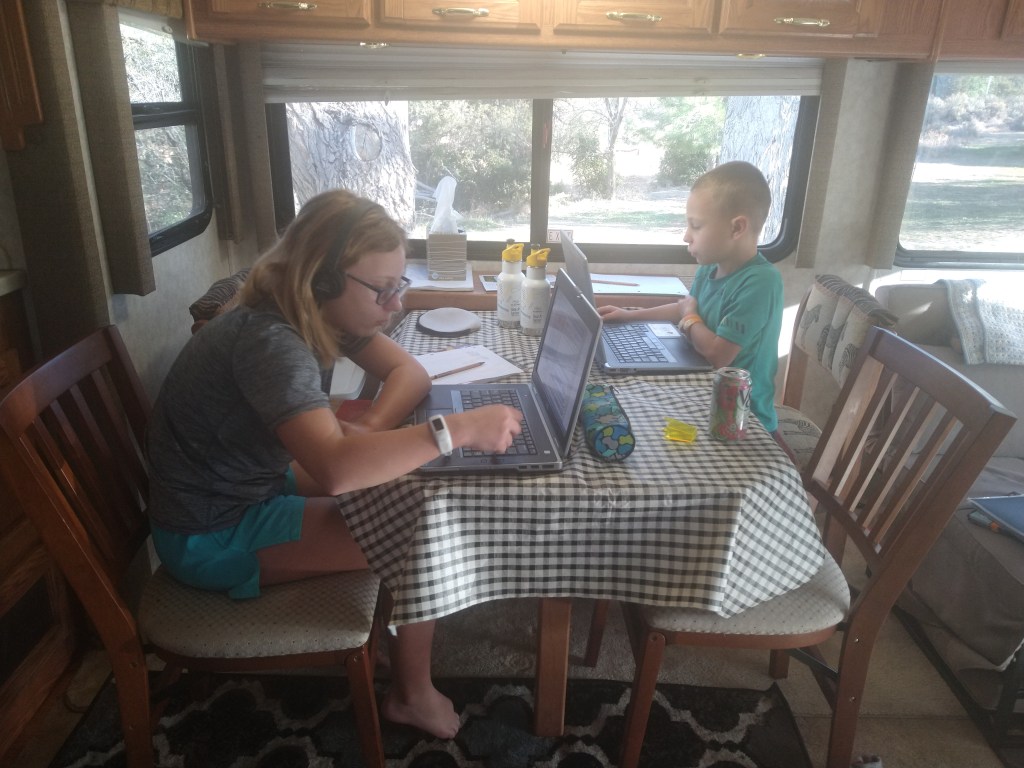 We headed south to Oregon to spend 10 days in some beautiful state parks. The state of Oregon offers disabled veterans of any rating 10 free days per month in any of their state parks. So of course we wanted to take advantage of that wonderful offer. Our first park was Cove Palisades north of Bend Oregon. The park was beautiful with full hook ups and nicely paved paths throughout. The weather was perfect in the low 70’s and clear skies. Each campsite had a nice picnic table and their own little yard to play in. There were very few campers there with more than 80% of the sites empty. Alexander and Victoria were able to set up their toys in our little yard. They both were able to ride their bikes and skateboards around the campground. We learned that if you rode all the way around the campground and back to our site it was exactly ½ mile. So the next day we took advantage of our ½ mile track right outside our door. Alexander was in charge of P.E. that day so he designed a workout that had all four of us run two laps and then come back and do push-ups, sit-ups, squats, and planks. And once we finished all of that we had to do it all again. Alexander loves to be in charge of our working out.