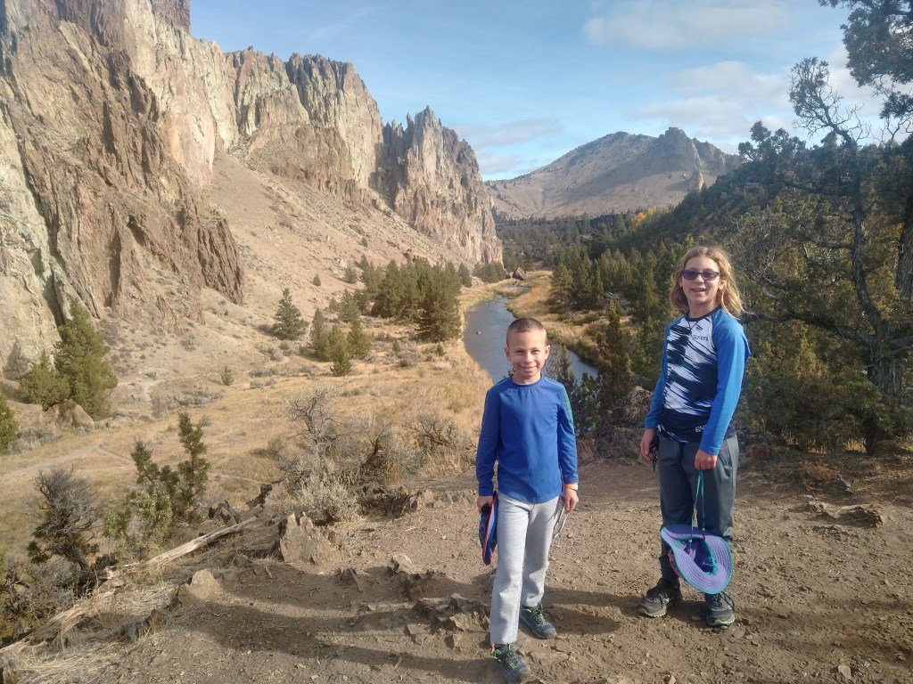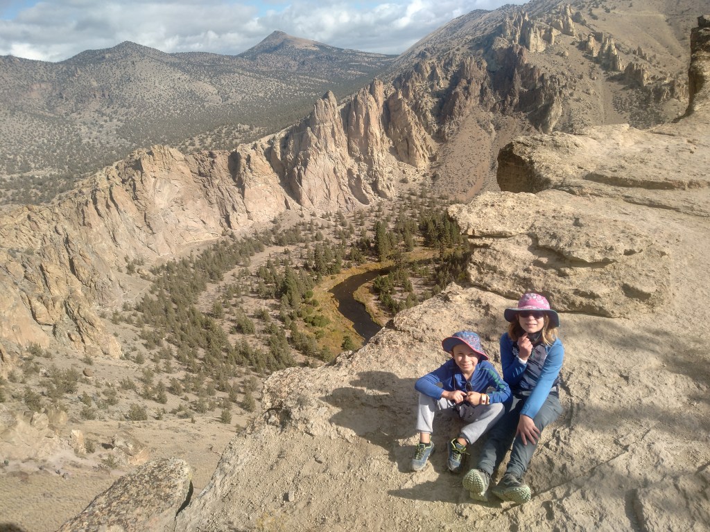 The next day we went for a hike in an area called Smith Rock. Smith Rock is a popular rock climbing area that has over 1000 rock climbing routes in a very small area. There are hiking trails all around the rocks and along the river that flows through the small canyon in the area. We hiked about 7 miles up and down and around the rocks, rivers and canyons. As we began one of the long hills I told Alexander and Victoria that if we catch the young, twenty something couple ahead of us by about 5 minutes before we get to the summit they will both earn 30 minutes of screen time. That was a mistake! Alexander took off on a lung bursting, thigh burning pace that in no time dropped his mom. After about 20 minutes of sustained fast hiking up super steep switchbacks Victoria said you can keep your screen time and fell back with mom. Still Alexander had that couple in his sights and he was not going to miss out on the screen time. As we neared the top the pitch became even steeper, yet Alexander’s pace did not let up. He caught them right as we all got to the summit with his dad behind him gasping for air and wondering which of my quad muscles will cramp first. He sat at the summit proud of his efforts as we both waited for Ashley and Victoria to arrive.