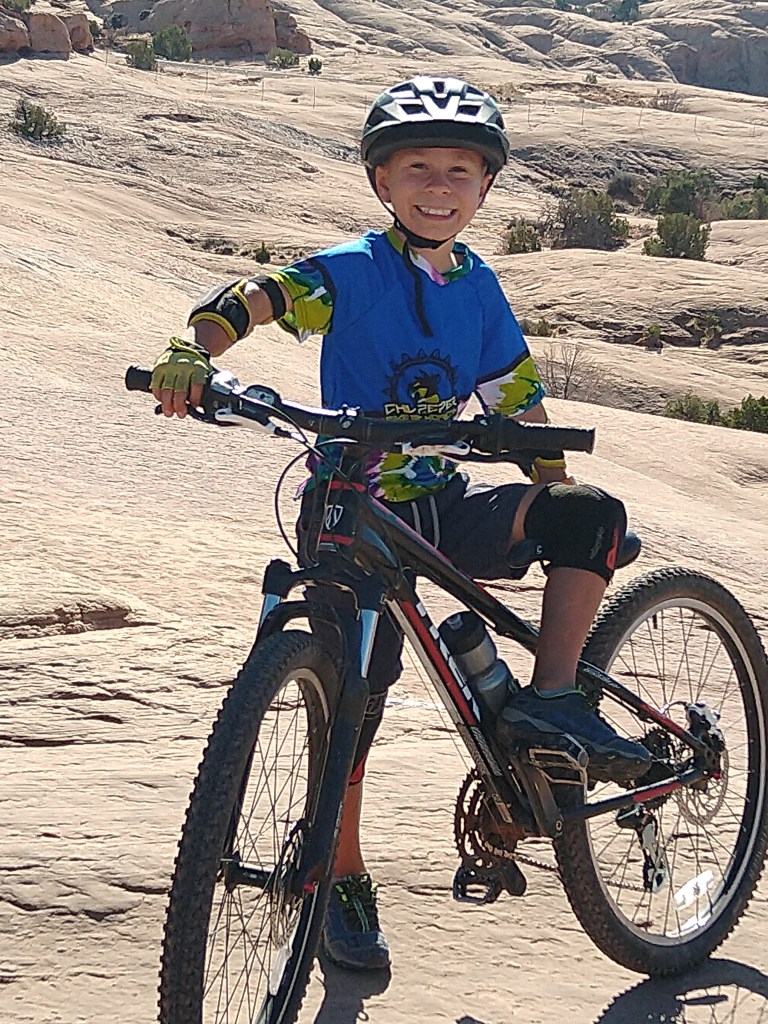 I started out by climbing the very beginning of the trail, and I never had felt so happy. I was riding with my grandfather and my dad. I rode the part that was on the practice loop and the big trail. I did that almost every day. Normally, I would turn right to do the practice trail, but today was different; I turned left to do the big trail. I noticed that it was like doing the end of the practice trail backward. Dad told me to do the fun downhill slowly. I almost accidently did the entire practice trail backward. Dad told me to turn left to get on to the big loop. There were two people at the beginning of the big trail. We passed them, and went up and over a hill. We looked back, and saw that we had passed and dropped them like a bad habit. I was having fun and enjoying this new trail, when Dad told me to stop and let him go ahead. It was a sharp turn with steep downhill after it. This obstacle could really get into your head. Dad told me that it would be safer if I did not do that obstacle. I did it anyway. I went down it and looked back. I saw that Grandpa was walking his bike down the obstacle. Dad said he had only done that thing twice. So far, I was enjoying this trail. Soon, I came up to a hill that I did not ride up or down. I had to ride across it. I did this without even stopping. The hill was just steep enough that a pedal strike was more than possible. There was cactus below, so falling would not be fun. I cleared that without a pedal strike, and without falling. Sometime after that, I had to go down a large drop. The drop was about one and a half feet. I went down it, and Dad said that he only successfully cleared obstacle a few times before. I tried to go up the next hill, but I did not make it. The next hill I only made it part way, I tried once, but I had taken the wrong path. I tried again but I ran into a tree! We went down a hill. At the bottom of the hill, there was a motor vehicle trail that crosses the trail. I rode down the hill and crossed the deep sand that I call a sand trap. I was really enjoying this. I like the trails that were full of hills, and Slickrock was just that. I went up and down many hills. This trail was shaped like a lollipop, and I went up a hill and got off ‘the stick of the lollipop.’ I passed a guy who was making a fake phone call as an excuse for me passing him. You could tell he was making a fake phone call was because he was not talking. He was gasping for breath. We rode for a little while, talking and riding. We were bike riding through a slightly sloped area, and I was following the white lines that marked the trail. I saw that the trail was going up a really steep hill. Luckily, the trail that we followed did not go up that hill. We followed the trail that were following and came up to a rock that provided some shade. We stopped there, and had a few oranges. We resumed riding, and I could not help but notice everything was so much larger than the same things in the practice loop: the uphill, the downhill, the sand traps, the drops, and the bumps. I was starting to enjoy this trail more and more by the moment. I rode a few more miles, and I tried to go up a hill. It was too bumpy, and I was too exhausted to go up it. Dad went up it, but Grandpa and I did not make it. Dad told me earlier that in this trail, there was a rock that was narrow and bumpy, and to both sides were large drop-offs. It was called the ‘dinosaur’s backbone.’ I asked Dad if this was the dinosaur’s backbone. Dad said it was not the dinosaur’s backbone. I wanted to do that again, but I decided not to do so. I walked my bike up this hill. I got up the hill, got on my bike, and continued riding. I rode past a zip line. There were many people riding the zip line. I rode up a small hill, and Dad asked me to look at him and smile. He wanted to take my picture. I did what he told me to, but any second longer, and I would have ridden my bike off of a cliff! He took my picture. I returned my gaze to the trail. I could see a man up ahead. Dad told me to go to him. I pulled my face covering up and went to that man. It turned out that he stepped off the trail to take pictures of the beautiful scenery in the canyon next to the trail. I turned my bike around, and continued on the trail. I rode on the rock, and came up to a hill that I had to go down. It would be a short, bumpy ride down the hill. Dad walked his bike down, and so did Grandpa. I repositioned my bike in a way that I could ride down this hill. I rode down the bumpy hill into a sand trap. Despite the deep sand, I made it across to get on to the rock. About a mile later, I came across the dinosaur backbone. It was not what I imagined. The rock was dark grey, steep, and bumpy. It was too bumpy for me to ride. Grandpa and Dad also walked their bikes up it. When we got to the top, I hopped on my bike and passed the couple that was riding their bikes along with us during the dinosaur backbone. Dad got way ahead of me, so I sped up and caught up to him. I was now already heading for the parking lot of Slickrock! I rode back to the parking lot. I rode all of the way to the ‘stick of the lollipop.’ Everything from there I had already done. I was just doing that a different way. What was downhill was now uphill. There was so much downhill going the opposite way. Now, I could not go up most of what I went down going the other way. But I got back to the parking lot with a big smile on my face. I was so happy and proud. Dad was also proud of me. He said I had done it in less than three hours. What an accomplishment!