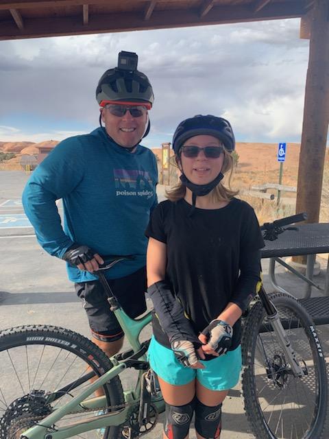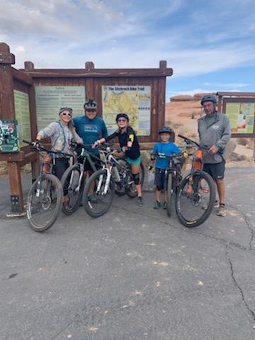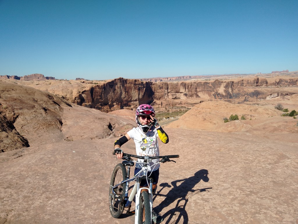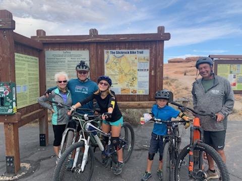 You may remember that the last time we were in Moab Victoria fell in love with riding on the Slick Rock Trail. I told Victoria that if she wanted to try the full trail we would give it a shot. She has ridden the practice loop which is about 2.5 miles a couple of time. The full trail is 9.5 miles and much more difficult with much more challenging obstacles and many more hills. I told her we will practice on some of the other trails and see how she feels after a week or two of riding. We spent 2 weeks riding the trails with Grandpa Murphy. Each time we went riding we looked for more challenging trails. The kids had a blast, each day after school when I asked them what they wanted to do with the remainder of the day they would always say go riding. By the end of two weeks of riding Alexander and Victoria were shattering their best times on every trail. They would not only go over most every obstacle but they would fly over them. They loved riding and they were excelling at all aspects of it. Finally, I told Victoria she was ready but first she has to break her PR on the Slick Rock practice loop. Previously her best time was just over 30 minutes. The last time we were here Alexander was a little intimidated by the Slick Rock practice loop. This time he wanted to give it another try. I told Victoria that all four of us were going to ride together for one loop to encourage Alexander and to refresh us all with the trail. Then she could try for the new PR. We started out all together and right from the start Alexander made it over the first of the most intimidating obstacles. That was just the confidence boost he needed and it was all downhill from there. Well actually there was a lot of uphill after that but you know what I mean. The four of us made it all the way around the practice loop and more important Alexander acquired the love for Slick Rock that Victoria and I share. We are all still working on Ashley. When we got back to the car Victoria and I caught our breath, rehydrated and prepared ourselves for a new PR for Victoria. We arrived by at the car 26 minutes later shattering her previous PR by 4 minutes. The full trail attempt would be tomorrow.