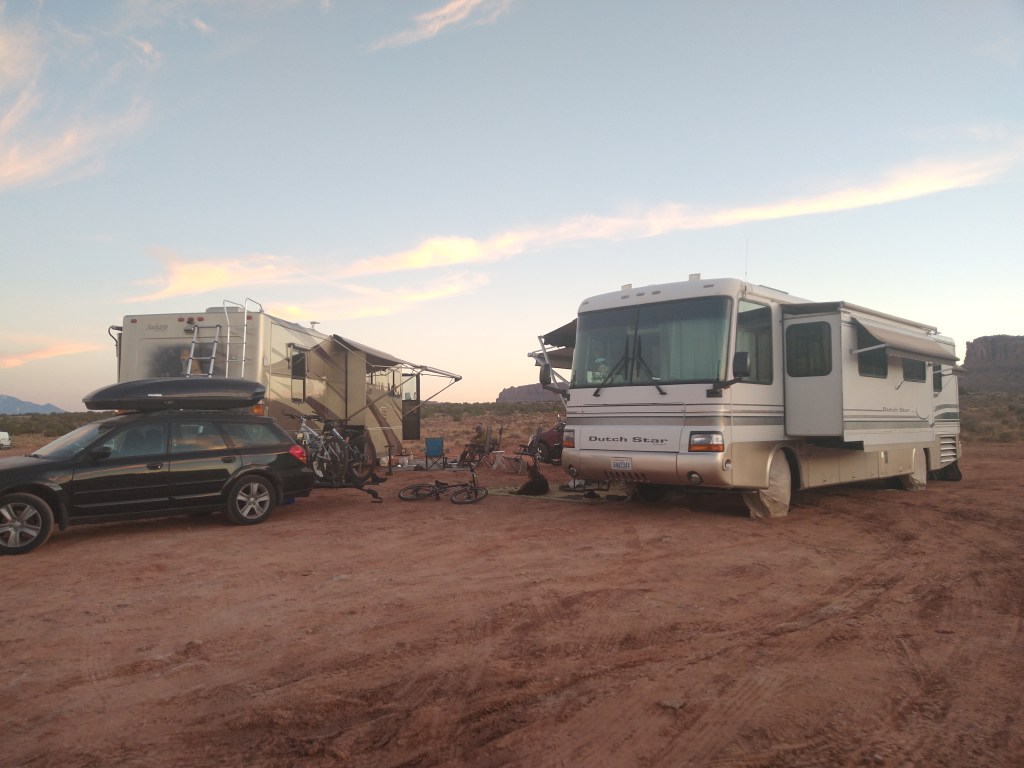 My parents were waiting for us to arrive and camping just outside of Moab Utah on some BLM land near some of the best riding trails in the area. We took 3 days to get to Moab via Redding CA, and Reno NV. We met them at the BLM land that offers RVers a place to park their RVs for free. The spot we found had room for both our coach and my parent’s coach. The kids had plenty of room to run around and play. Alexander had a large area to set up his toys and even Ranger had a large area to roam and explore. We were surrounded by other RVers looking for a nice place to camp while riding the trails of Moab before winter sets in. With the season ending I took advantage of the year-end sales and upgraded my bike. You may remember that I have been riding a bike that John (Ashley’s dad) very graciously let me borrow for the summer. It was a great bike but I did not think that it would last under the stress of another year of hard riding. Besides Ashley got a new bike and was talking about how great it was.