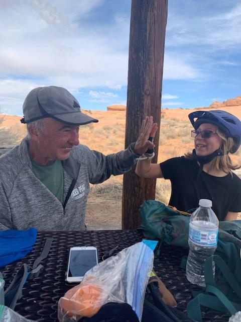 I packed lots of water and lots of food. My dad came along, too. The Slick Rock trail is an extremely challenging trail with many super steep hills both up and down, big drops, and intimidating obstacles. It is rated as a double black diamond trail and is not for the faint of heart. It clearly states that it is not a ride for children. At the trailhead it says the time to complete the trail is anywhere from 2 hours to 6 hours depending on your fitness level. I have ridden this trail many times and it always is a challenge physically, so I was prepared for us to spend the day on the trail or to even turn back if Victoria decided to do so. Describing the entire nine mile ride would take pages of writing so I will be brief. Victoria and Alexander have both done some amazing physical feats in their short time on this earth so far, but this one with forever stand out. Victoria, at the age of 9, completed the entire Slick Rock trail in 2 hours and 52 minutes! The first two times I rode this on my own I was over 3 hours. She climbed hills I thought she had zero chance of getting to the top without walking. She went down obstacles that took me years to gather the courage to attempt. There is this particular obstacle that I have never attempted as it is a multi-tier drop of about 6 feet with unforgiving rock ledges surrounding it. When we rode up to this obstacle I was in front with Victoria right behind me and Grandpa in the rear. I came to a stop and told them to walk this “scary” drop. Victoria rode up to it, appraised it, made a circle to come back to it and went right down! She cleared it perfectly! I couldn’t believe what I had just seen. I had just seen my 9 year daughter ride this monster obstacle but I still walked my bike. My dad, too, said no way and walked his bike. We took two short breaks along the way. Each time Victoria ate a few oranges drank some water and was ready to keep driving on. The last ¾ of a mile is a long fairly steep climb to reach the trailhead. Victoria was definitely spent but she push all the way up the hill even passing another twenty something rider who was finishing the practice loop. He said good job as we passed and try to commiserate with us about how difficult the practice loop was. His jaw dropped when I told him that she was completely the entire ride as she passed him on the hill. When we finished Alexander and Grandma were waiting at the finish cheering her on. Alexander was so happy for his sister continuously telling her how great she did. Victoria was spent but elated and really relished in her accomplishment. Grandma asked her if she would do it again and she said probably not. Yet two days later she was planning her next run on the Slick Rock trail to improve upon her time. Below is a small excerpt from Victoria’s journal: