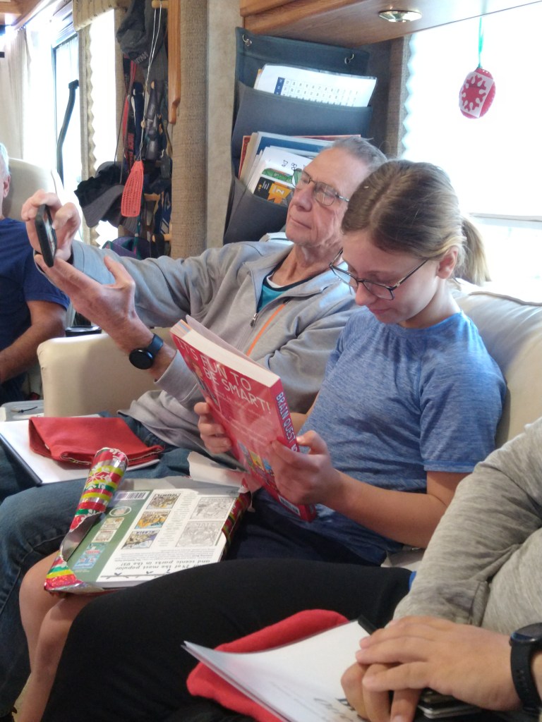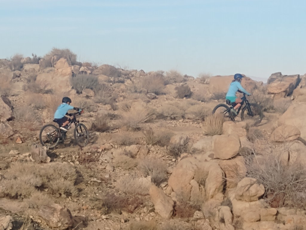 We had reservations to stay the last week or so of December and most of January at an RV park. Now, that is not our normal as RV parks can be expensive. Not to mention, often the sites in RV parks are too close together for our liking in normal times and during the current pandemic even less so. My parents have stayed here in the past and assured us that the spots were spacious and that the staff would space us out to provide the proper social distancing for the times. We arrived a little after noon and were escorted to our site. It was not too big and yet not too small. They assigned us a spot right next to my parents with no one on either side of our two coaches. We set about our tasks of setting up and soon we began exploring our new home for the next month. The resort is very nice. It has nicely paved roads and level campsites. There are two large pools that are heated from a nearby hot spring. There are 5 pickleball courts, a mini golf course, shuffleboard, horseshoe and a corn hole game all available to the guests. Just outside the park are trails through the desert and into the surrounding hills that surround the valley in which the RV park is located. Our first fews days were spent enjoying the amenities of the park. We went swimming every day sometimes in the morning and in the evening. We played mini golf. Victoria, Alexander and I learned that there is no point in playing shuffleboard or corn hole with Ashley. She is ruthless and just laughs as she crushes all opposition. We also spent lots of time on the pickleball courts. Victoria and Alexander excel in a lot of things but sports or games that include a racquet let alone a ball have not always been their strong suit. But after just a few days they both have been able to dial in their game and it is now pretty fun to hit the ball around with them. We have also found a few fun hikes in the area as well as some pretty good mountain bike trails. Grandpa John was able to drive down for Christmas and spent a week spending time with his grandkids and having fun in the desert sun.