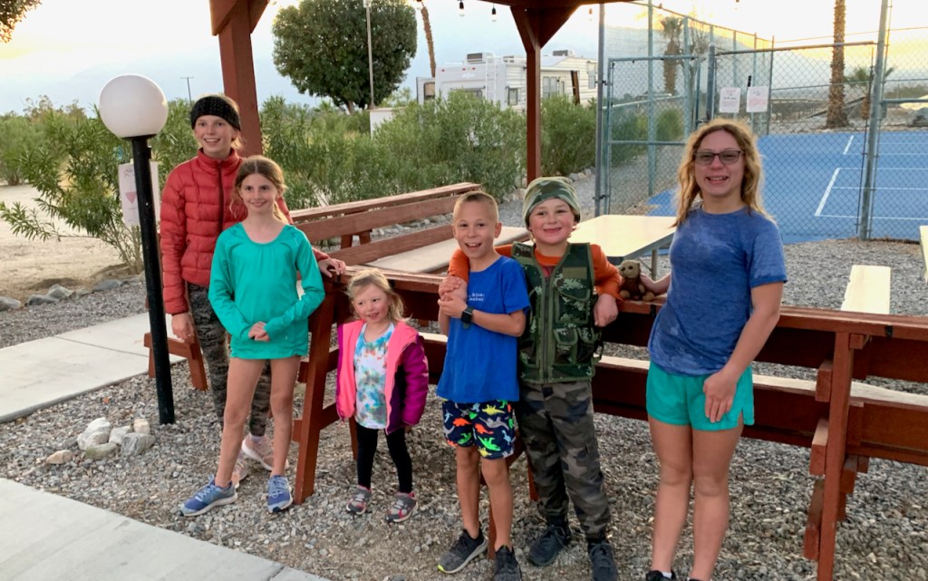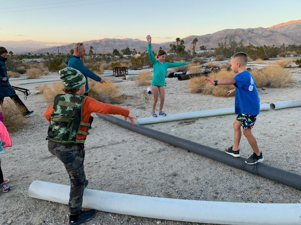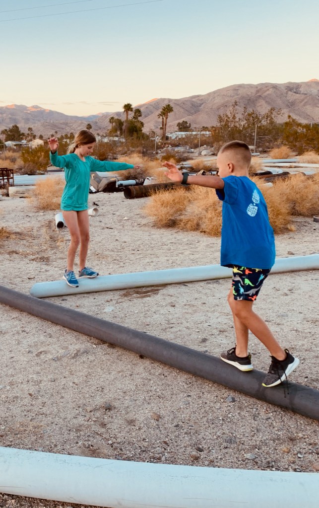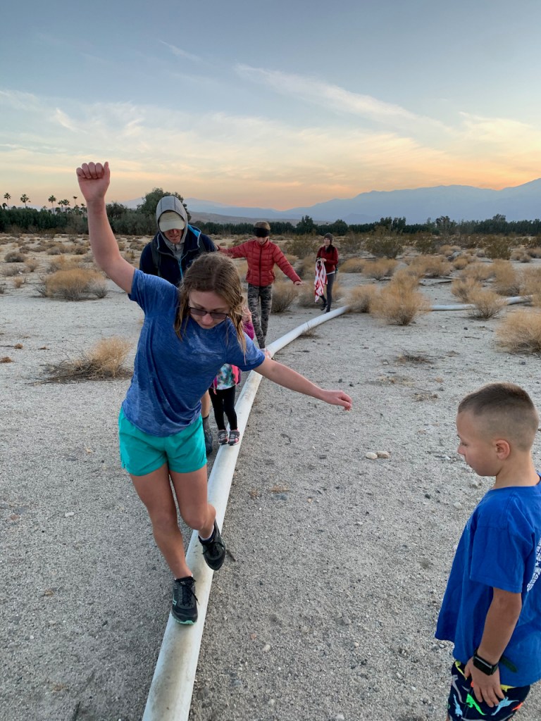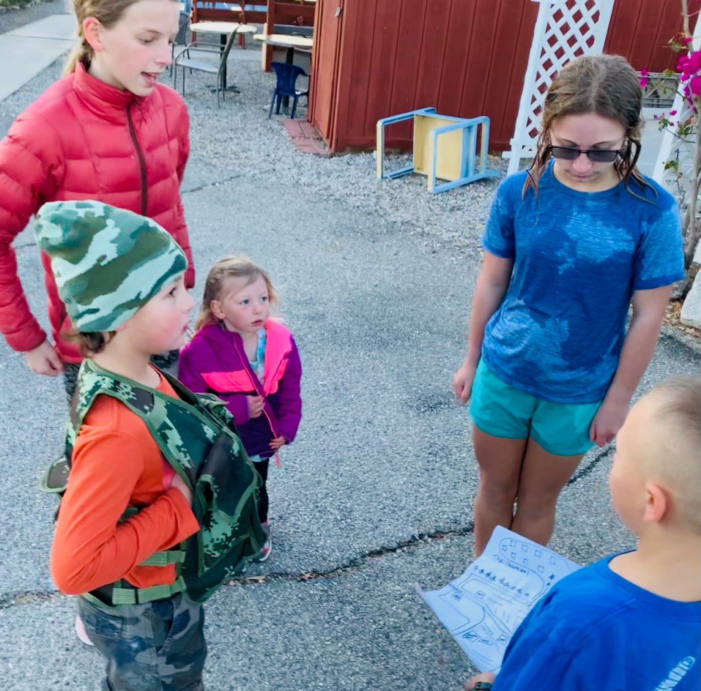 On one of our workout days we all decided to have a triathlon. We planned to swim laps in the pool, then rush to our bikes parked nearby, ride a few predetermined laps outside the park, come back and drop off our bikes and then run a few laps on our mile loop. I thought that I would go around the park and ask if others would like to participate as we had had many people take notice of our running and I thought they may want to play along. Victoria and I went around the park telling many people and families of our plan. And as you can probably guess we received a lot of “thanks, but no”. There was one family however, that I met at the other pool who had the same bring it on mentality as the Murphy family. Soon Autumn had her parents and younger sister Brooke rushing to our event. We were already half way done with our swimming when Autumn and Brooke joined us but that did not stop them from quickly catching up. We have seen dolphins who cannot swim that well. Soon we were all out of the pool and heading to our bikes. I caught Autumn and Brooke’s parents up on the bike and run route and just like that we were all off. The kids all introduced themselves on the 8 mile bike ride. They all cheered each other on at each of the turn arounds. By the end of the swim, bike and run Alexander, Victoria, Isaiah, Brooke and Autumn had become good friends. Will and Karin, Autumn and Brook’s parents, not only seemed to put up with my crazy ideas of “fun”, but also seemed to enjoy it. (I think, or I hope). The next couple of weeks would lead to many days of playing, forts being built, and engineering projects designed and implemented. The two new families like our workout rotation and soon joined in our adventures. We did another even longer triathlon. Will and I designed an obstacle/adventure race that took the kids and adults from swimming in the pool, exercising at the pool’s edge, running around the RV park, climbing over ladders, bouncing pickle balls, jumping streams, jump roping, doing burpees, bike riding and then climbing 1500 elevation gain mountain. One day Brooke created a fantastic scavenger hunt with riddles and clues for Victoria and Alexander. It was so fun reading her riddles and searching for the clues she left for them. Alexander and Victoria wanted to use her fun idea and make her a course to follow. I told them we would another day. I then used her brilliant idea and created a scenario for the kids that included riddles, clues hidden throughout the park, and an obstacle course we called “the gauntlet” all in the hope of rescuing a kidnapped otter at the hands of an evil stuffed monkey. The whole adventure was actually a guise to have the kids run all around the park without evening knowing they were exercising. Alexander’s fitness tracker for this event had him running almost five miles. The kids each had their own expertise based assignment to gather clues that when combined with the other kids’ clues would lead them to a group assignment that they needed to complete in order to rescue the poor otter. Once all the clues were combined they all went off to fight their way through the gauntlet as a team, Alexander, Victoria, Isaiah, Brooke, Autumn and even little 3 ½ year old Addeline (Brooke and Autumn’s youngest sister) all working together, pushing each other on to the finish. In the end the otter was saved in the nick of time and the kids were all tired but happy. It does not get better than that.