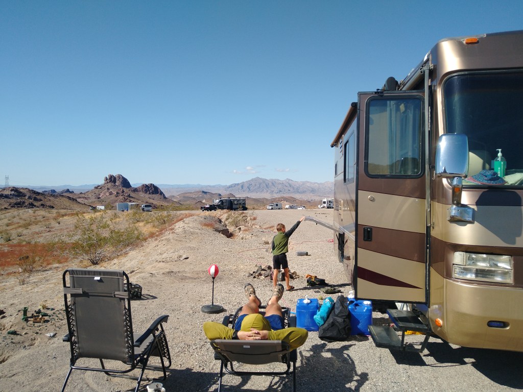After leaving Catspa (short for Catalina Spa and Resort) we headed for the Arizona side of Lake Havasu and Lake Havasu City. We got back to our roots and found a great spot on BLM land overlooking a beautiful desert wash. It was nice to be back in a more natural environment and a place where Ranger could be off leash. Ranger spent many hours exploring and wandering around the wash with Alexander and Victoria as they free ranged around. We were 15 minutes outside of Lake Havasu City surrounded by desert, rocky hills and sandy washes. Now we are no fans of the de