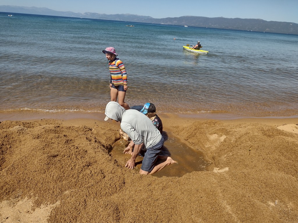 We had been planning to meet up with Team H again in Lake Tahoe ever since we said goodbye to them in Moab. Now the time had come for us to make it happen. Team H had secured us a permit for backcountry camping in the forests surrounding Lake Tahoe. We found an RV resort to park our coach 2 days prior to our scheduled backpacking trip. We reunited with Team H in Incline Village on Lake Tahoe and they showed us the sights. We took a long beautiful bike ride to and amazing beach and the kids all played in the sand and swam in the crystal clear but freezing cold waters of Lake Tahoe. We made our final coordination’s for our trip and planned to meet again the next day at the trailhead loaded for 3 days and 2 nights in the backcountry.