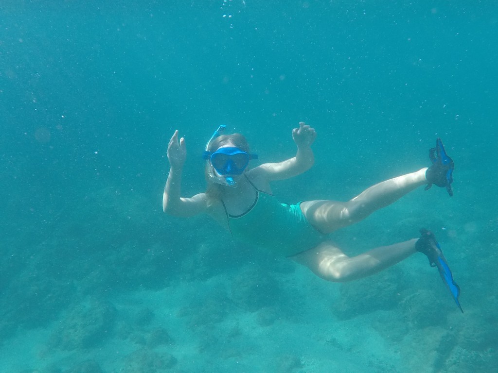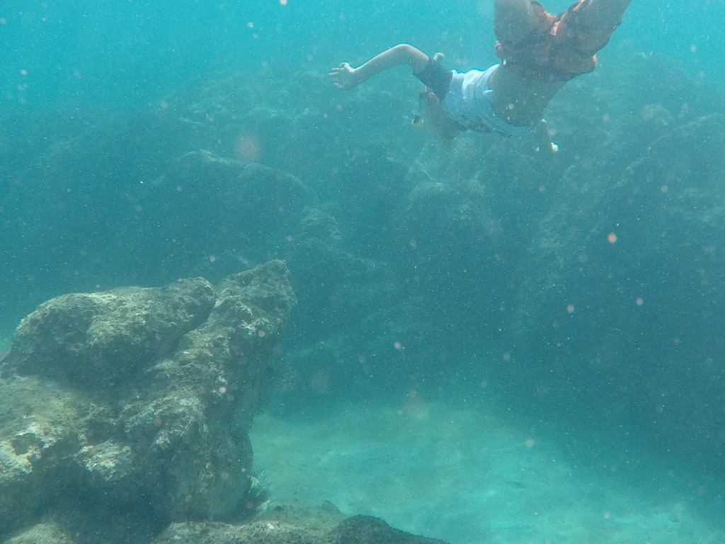 Our first passage south was a 250 miles run down the coast. We left the marina in the morning and were greeted with an amazing show of humpback whales waving goodbye. As we left Banderas Bay the wind began to increase and did so all throughout the day reaching into the 30 knot range by mid afternoon. The seas picked up as well and just like that we were racing down the coast of Mexico. Ashley and I took turns at the helm all through the night as the waves increased in strength and tried tossing the boat around if we fell too far off course. It had been more than a year since Ashley and I were the only two adults aboard to share the night watches. Yet we eased into the rotation and the routine like it was just yesterday. There was almost zero moonlight so the night was dark, windy, and had large seas but that did not slow us down (in fact it really sped us up). Samadhi, the kids, Ashley and I had a wonderful passage and we were all very happy to be on the ocean again. We had dolphins playing in our bow wave 4 or 5 times throughout the days and it was great to see Alexander and Victoria excited about that again. We sailed into the bay near Chamela at 11pm on the second day and dropped our anchor in front of the small town. The next morning we moved south about 4 miles to a beautiful little island. Here we spent the day snorkeling in the clear, warm waters of the Pacific Ocean.