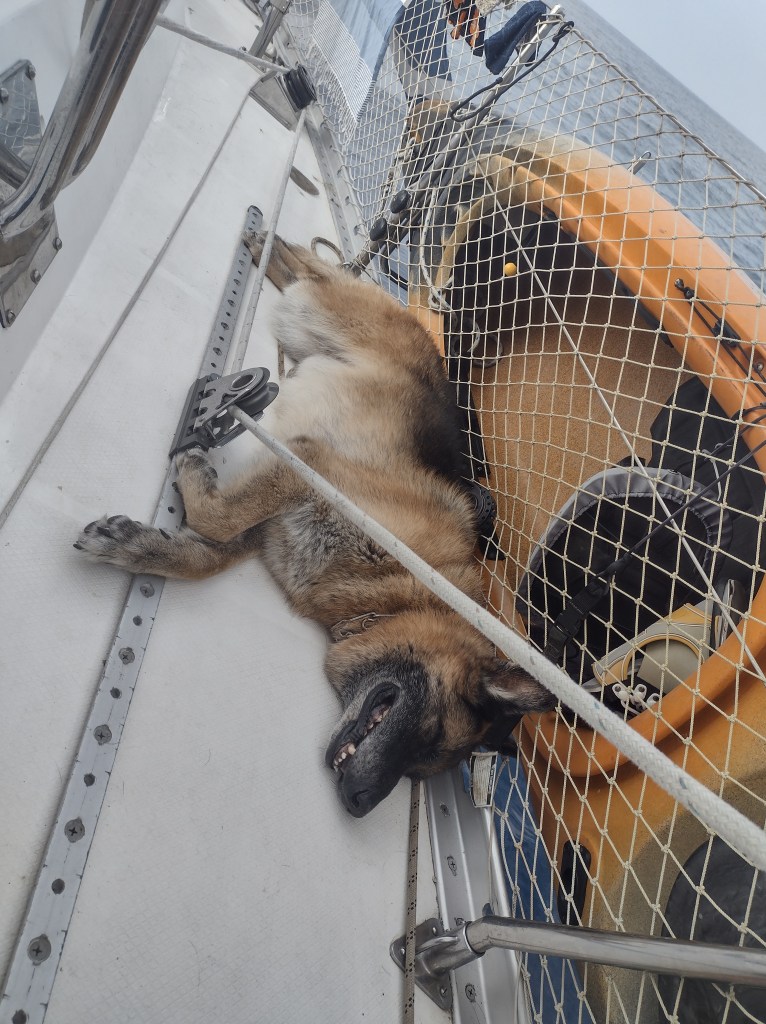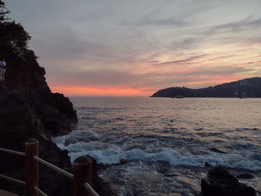 Our next leg was a longer run of 188 miles to Zihuatanejo. Seven boats in the little bay of Manzanillo all planned to head to Zihuatanejo and all decided that the weather looked great for the next few days. So when we woke up in the morning 2 boats were already gone and the other 3 were raising their anchors. I took Ranger into shore for his morning routine. When he and I returned we began the process for departure. By time we were moving our traveling flotilla anywhere from 2 to 4 hours ahead of us. We motored for the first hour or so which was fine because it gave our batteries a good charge. Our solar panels do not work as efficiently as usual when we are sailing south all day. The mast and the sails shade the panels all day and we are going downwind so our wind generator is not helping either. Therefore running the engine for an hour or so a day is becoming routine. Late in the morning the wind filled in and you could see all of the boats begin raising their sails. The wind filled in to Samadhi’s sweet spot and we soon had the spinnaker up and were sailing past our flotilla. By late afternoon we had caught and passed the last boat and the rest of the flotilla was so far behind us we could not even see them. As the night approached most of the fleet decided to stop and anchor. Ashley and I just could not put our sails down in such great conditions so we elected to sail through the night. Mother Nature did not disappoint us and the wind stayed true all night. We made excellent time and what could have been a two day and two night trip had us arrive to our destination by late afternoon on the second day. The first boat to arrive behind us showed up 7 hours after our anchor was down. Samadhi had her legs under her and put on an offshore sailing clinic.