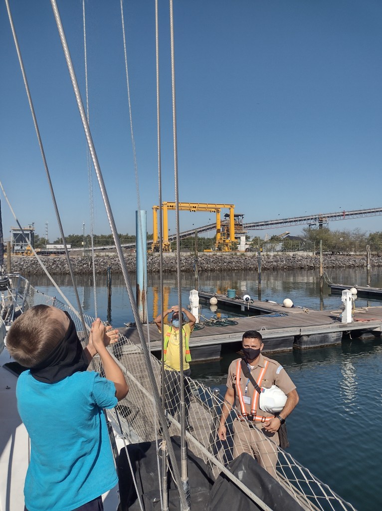 We crossed the Gulf of Tehuanepec with no issues. We had absolutely zero wind for the entire trip so Samadhi was a powerboat for two straight days. We saw lots and lots of turtle and dolphins and we had beautiful sunsets, sunrises and full moons both nights. So, other than listening to the engine and burning diesel the entire time, it was a great crossing. We arrived at the very industrial Port of Quetzal in the late afternoon. The Port Captain was super friendly and very helpful in directing us to the tiny marina that rarely sees visiting yachts. As we hesitantly approached the docks it seemed that all the fisherman that were working on their fishing boats stopped what they were doing and waved us in. We were more than a little unsure as the marina’s depths were uncharted and there was no sign of a sailboat or larger boat with any kind of draft such as Samadhi’s. (Draft is how deep our keel reaches below the water. Samadhi’s draft is 7 ft.) The docks were also not near long enough to fully accommodate Samadhi’s length. We yelled across the water if it was deep enough and if we would fit into their slip and we were met with a phrase we would soon be hearing a lot. “It’s O.K. no problem!” So in we went. It did make docking easier when we had no less than 7 men there to catch our dock lines with another 4 or 5 standing by in reserve if we need to be helped further. We squeezed into the slip and got tied up as best we could on the short dock. Samadhi stuck on of her slip by about 8 feet. But hey, “It’s OK, no problem”. Everyone welcomed us to Guatemala and thanked us for visiting their country. They all let us know that if we needed anything at all that any one of them would be happy to help. It was a welcoming like none other.