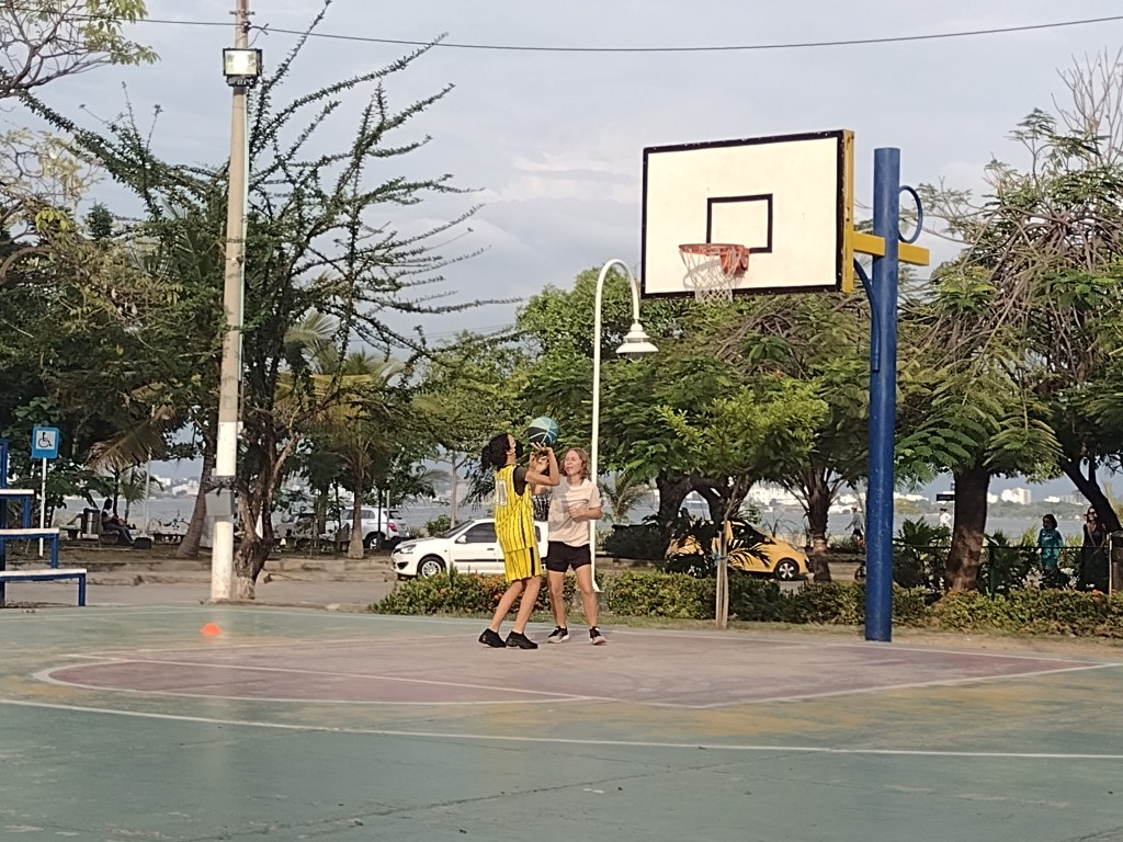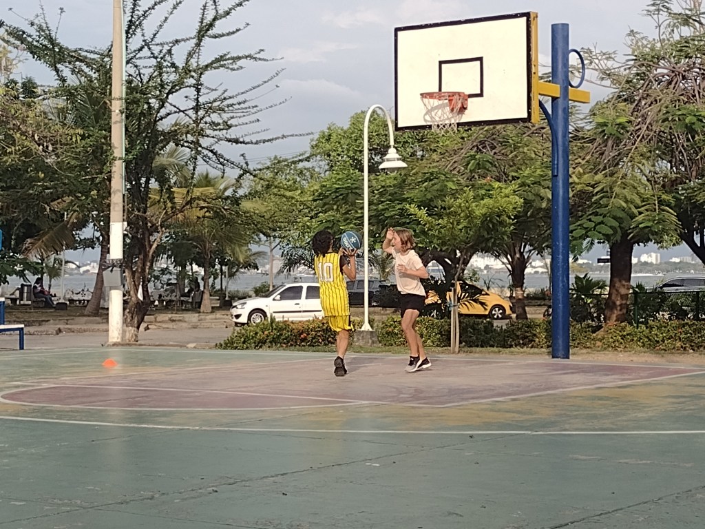 Learning about and participating with the basketball team has been a real bright spot in our time in Cartagena. However the best part about us learning about the basketball team is being able to meet Laura!. Laura is an amazing girl that is on the basketball team. She is that girl that is both extremely good at whatever she does and at the same time welcoming to all the new people. She is so kind and generous and is always happy. She was the first kid to help both Alexander and Victoria when they did not understand the drills. She was the first person to high five the new kids and make them feel a part of the team. She is quick to translate and demonstrate for Alexander and Victoria. Her English is that of a native speaker and she is highly intelligent. Victoria and Laura quickly became friends and on the times Victoria just did not feel like going to basketball practice the thought of seeing Laura made her jump into action and get ready to go. We soon met Laura’s parents who are just as amazing as their daughter. Vanessa, Laura’s mother, is an ex collegiate table tennis (ping pong) player (she can crush me without even breaking a sweat), an amazing cook and a wonderful woman. Henry, Laura’s father, is a soft spoken and always kind man. He works hard at a local clinic as an anesthesiologist and provides a beautiful home for his wife and daughter. We spent time with this family at local parks playing basketball and ping pong. We had a wonderful dinner at their beautiful home. Laura shared her absolute love of the musical Hamilton with Alexander and Victoria. And we learned about each other’s lives. They are truly wonderful people and we hope to be able to see them again in the future.