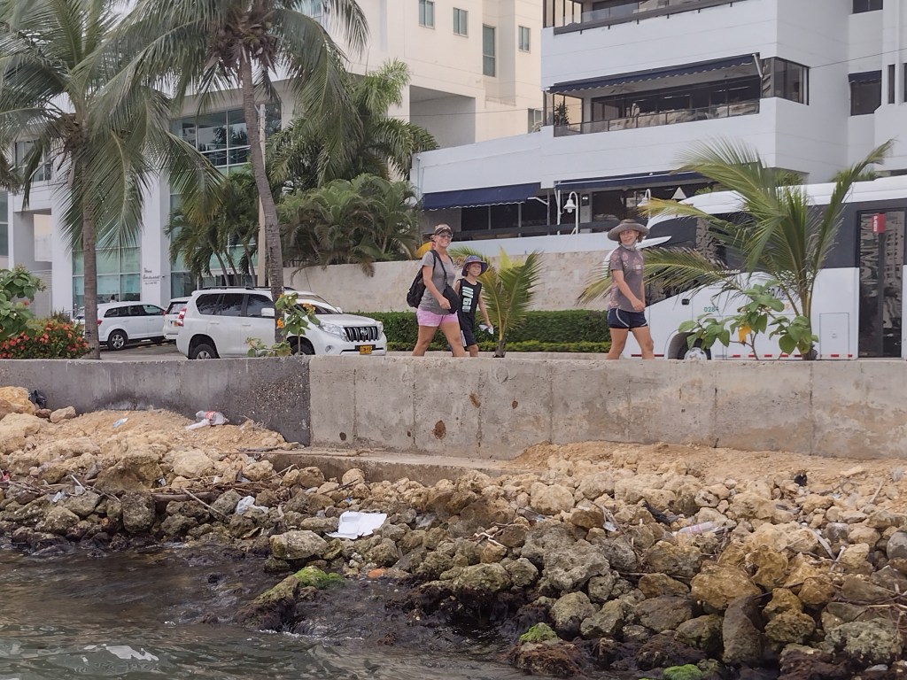 Now that we are staying in Colombia longer we decide to move Samadhi from the anchorage in the city to a small marina and boatyard. Our new marina was in a less than desirable part of town but it had excellent security and was a short dinghy ride to the nicer parts of town. Our previous anchorage was in front of a neighborhood called Manga. Manga is the kind of place that everyone feels comfortable walking around regardless of the time of day or night. There are many parks, coffee shops, vendors and restaurants around every corner. This is definitely an upper middleclass neighborhood. Our current marina was right next door to a less than middleclass neighborhood known as a barrio in this part of the world. The owner of the marina highly recommended I not go for runs in the neighborhood and the security guards do not even open the gates for us until our taxis is pulled up right next to the door. Personally I think they were overreacting but I deferred to their experience and stayed behind the walls of the marina. Fortuanately the marina in Manga allowed us to use their dinghy dock so most of the time the four of us just loaded up on Rogue One and went to Manga to go shopping or run or play basketball. We were able to explore much of the Manga neighborhood as well as the Old City (the walled portion of Cartagena) and the neighborhood of Bocagrande. Each neighborhood has its own personality and history. All are full of amazing restaurants and cafes. All have fantastic parks with locals participating in many different games and sports. Everyone has been so kind and welcoming and they all seem to always be smiling. It is really a happy place to be a part of.