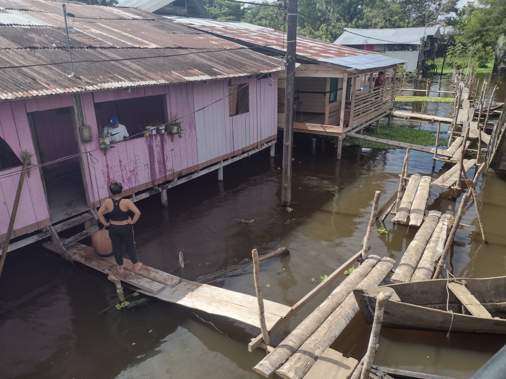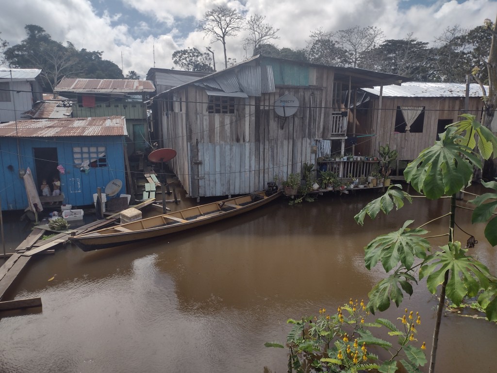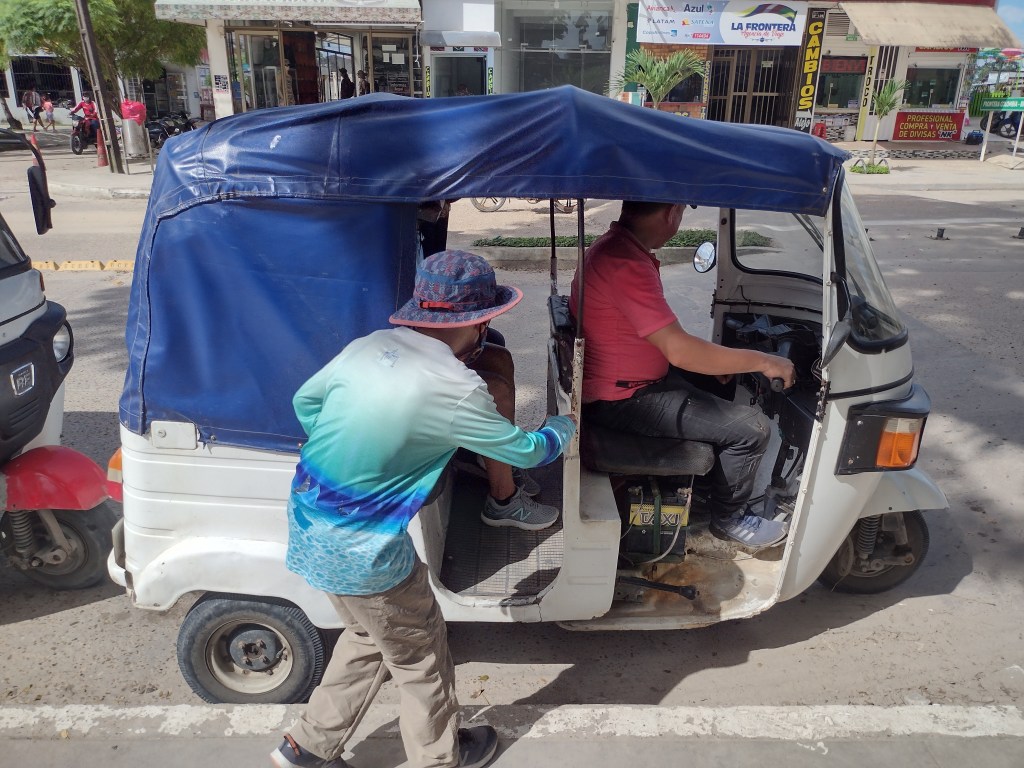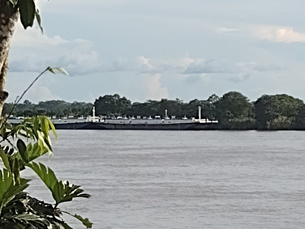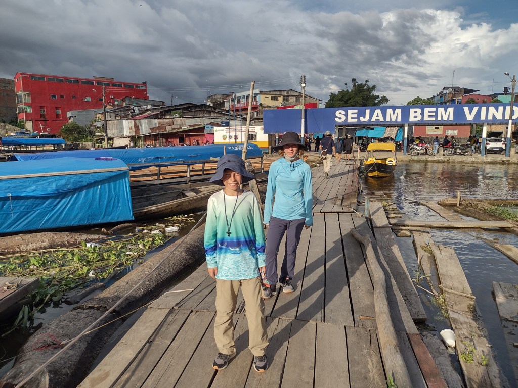 At 3pm in the afternoon on our second day our tour guide picked us up at the hotel and took us on an in depth tour of the Brazilian city across the border. His name is Sergio and he is without a doubt the most amazing tour guide. He knows every nook, small bay, trail, and animal in the Amazon. He can produce many of the sounds of the birds and can spot monkeys and sloths in the trees long before we ever could. He is extremely friendly and patient and knowledgeable and he truly loves and respects the Amazon Rainforest and river. If anyone is looking for a guide to take them on a similar trip please reach out and we will forward you his info. We rarely recommend things or people but we would highly recommend Sergio. He took us to the town’s library and museum. Here he explained the many different indigenous groups of people that still make this part of the Amazon their home. While, Sergio does not belong to an indigenous group, he has great respect for their traditions and ways of life. You can hear it in his voice and feel it in the information that he shares. He also took us across the border to Brazil to a beautiful overlook of the Amazon. He then took us on a deep dive into the facts of the Amazon River, the rainforest and how it all plays such a huge role in the Earth’s weather. A Harvard professor of Environmental Studies could not have done a more thorough job. As the sun went down we drove to a park in Leticia. At this park every night between 4pm and 5pm thousands, no tens of thousands of birds return from the rainforest and sleep in this park. Sergio timed our arrival with the birds. It was simply amazing. Thousands and thousands of birds were all around and we could see thousands more coming from the other side of the river all to this one little park about the size of a quarter city block. The noise was almost deafening. Sergio of course explained to us all the intricate reasons that the birds choose this park. We spent one more night in Leticia and met Sergio the next morning. He drove us down to the water front and we met our already arranged water taxi that would take us up river and across to the Peruvian side and into the Amazon Rainforest.