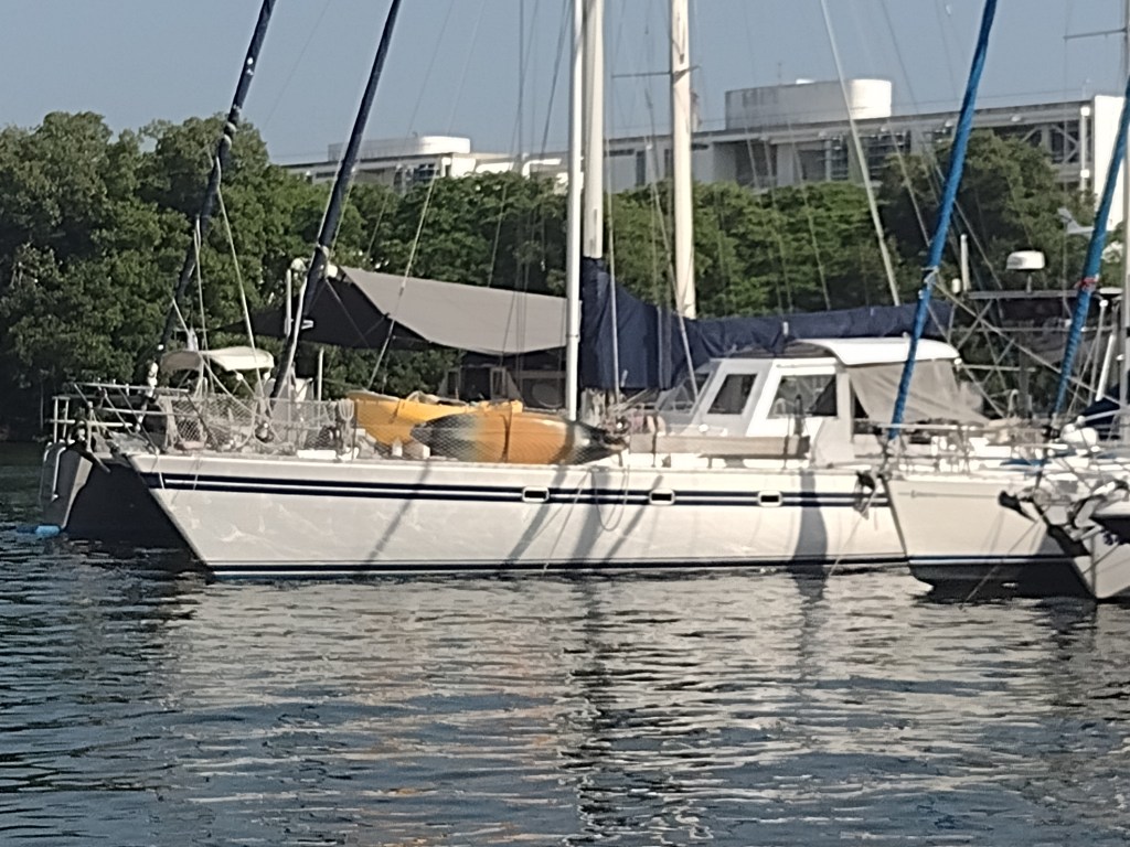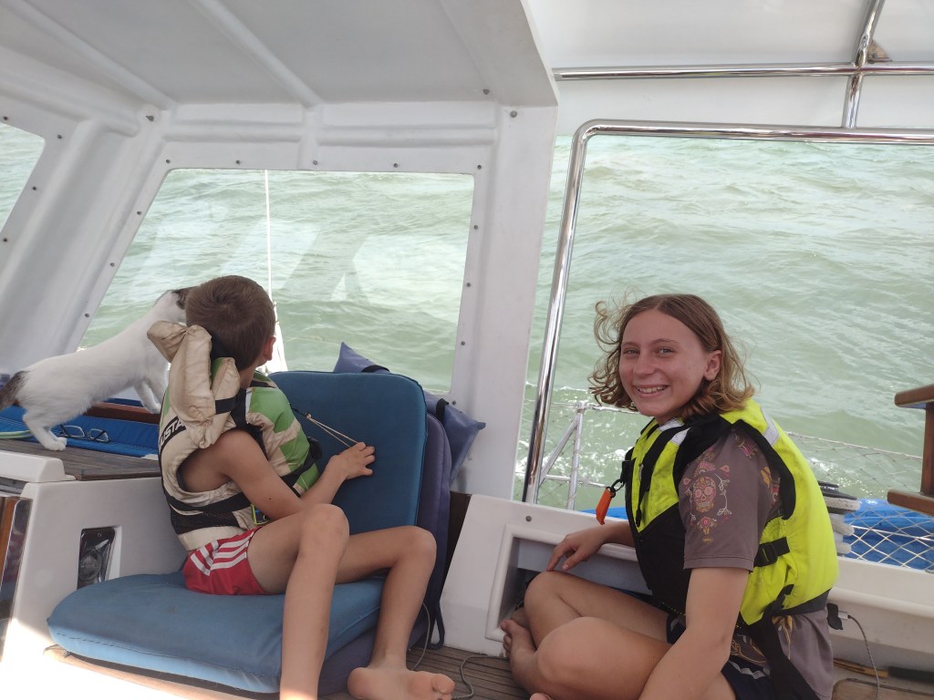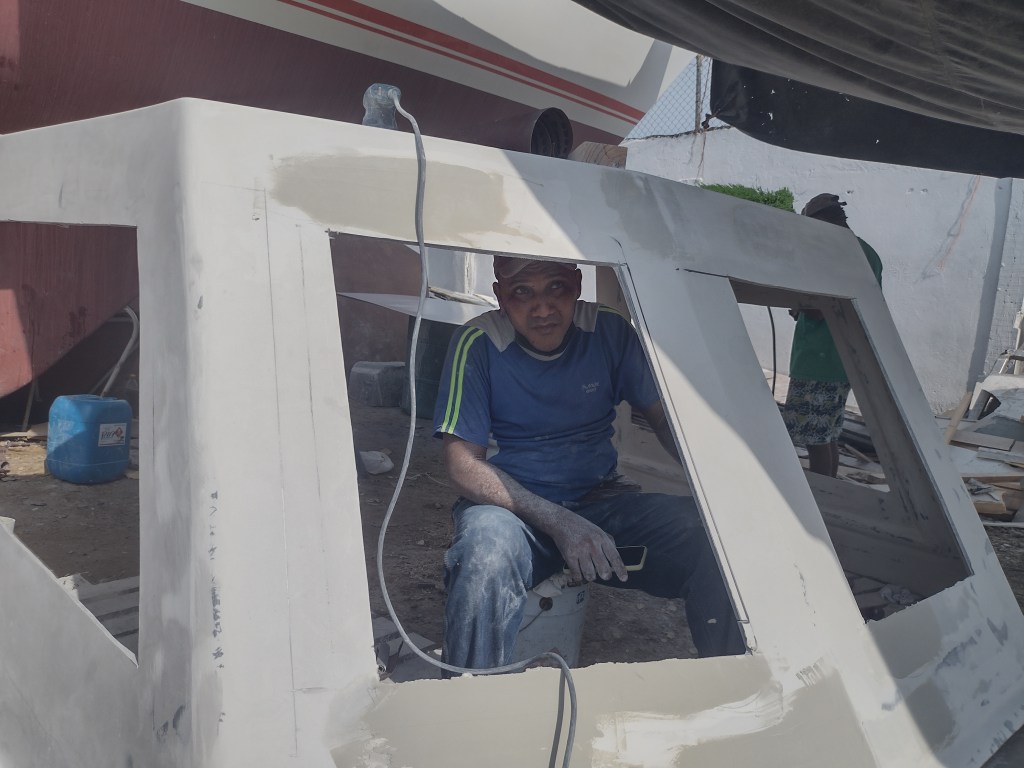 Now here we are with a, maybe not beautiful, but solid, functional and long lasting dodger. We also have a beautiful and more functional bimini. Both of these structures are strong enough for us to walk on top of and are both slightly larger than the structures they replaced. My personal opinion is that the dodger is uglier than the canvas but I am out voted by the rest of the crew. Our first passage with the new set up went very well and they were both thoroughly tested. On the final day in Colombia we had all of the guys that worked on the boat over for lunch to show our appreciation for their excellent work. Each and every one of them are great guys. They all kindly interacted with our kids and were so respectful of our space and our home. They were always patient with us as we came and went despite us interrupting their work. We not one time felt anything but kindness from these men. Now I am sure it helped that we bought them all lunch at least 2 or 3 times a week. We would also bring them cold water or sodas and offer them snacks whenever we were around the yard. I noticed that we were the only cruisers buying lunches and showing our appreciation and at the same time we were the only ones not complaining about quality of work or things getting done. Probably just a coincidence.