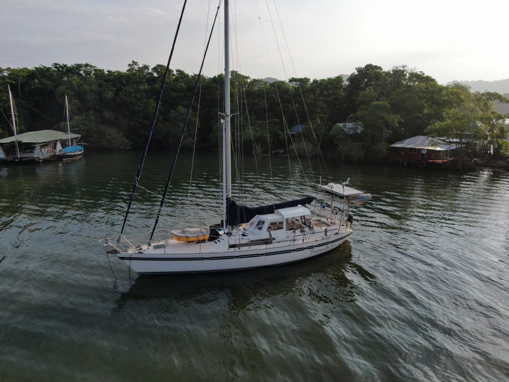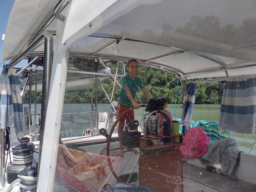 The day before we left, Ashley and the kids spent cooking and freezing passage meals while I provisioned us for the planned 7-8 day passage at sea. We left early in the morning to very calm seas and no wind. As the sun rose over the eastern horizon so did the wind and we were soon sailing under Genoa and jib. By 10 in the morning we were making great speed when the seas began to rise. At first just a slight swell and then quickly rising to the tall compact waves that this area is known for. By noon we were in 20-25 knots of wind with a 6-8 foot sea state at less than 6 seconds apart. This was uncomfortable but not unexpected. So as we discussed prior to leaving we all just found a secure place to be as comfortable as possible and listened to audio books or whatever as long as it did not require moving around. On the first day no one felt like eating and we all just held on and got through it. By the second day we all had our sea legs back as well as our appetites. The boat was still being tossed around by the seas but we were able to get back to a little bit of normalcy at least as far as a passage is concerned. On the third day we all were good to go and the heeling of the boat, the crashing of the waves, the constant dropping into and off of waves was just our routine. The good part of higher that preferred winds was that Samadhi was flying. Normally if we travel 180 miles in a 24hr period we consider that pretty good. Our first 3 24hr periods we averaged over 210 miles. The winds were taking two whole days off of our passage and according to the forecasts they were going to continue. By the 4th day we reached the area off the Honduran coast known for recent piracy attacks so we turned off all broadcasting devices (AIS and radar) and left our lights off at night. We never saw another boat and we soon made the sharp left hand turn toward the Bay Islands of Honduras and safer waters. On the 5th day we reached the islands which were a major point in the passage as the seas begin to lessen and the winds begin to diminish. At this point we were less than 130 miles from our destination. We had just traveled over 800 miles of difficult weather and seas and with the exception of some discomfort everything went very well. And now we are in much more protected waters with much lighter winds so the rest of the way should be smooth, right? Not even close! We passed the Bay Islands just before dark and had one more night and another day and we would arrive at our destination. And then, the lightning came. At first just off to our left, then to our right, and quickly it was all around us. I do not have the words to describe how terrifying lightning is to someone on a sailboat at sea. It is even more terrifying when it is all around you and even above you. We decided to take shelter next to one of the islands but by the time we were able to reach the narrow entrance through the reefs it was pitch black. So Ashley and I had to slowing find our way through the reefs using our charts, our depth finder and the light provided by the hundreds of lightning strikes happening all around us. We made it in and tucked ourselves up close to the hillside for the night. The next morning we woke up early and made a mad dash for our destination. The forecast called for a very small chance of more lightning in just a localized area. We planned to be well past that area before the lightning came. Not even close again! Once the sun went down that “localized” area became the entire northern coast of Honduras! Again, as soon as darkness came so did the electrical storms. Again, lightning surrounded the boat. So again we took shelter. This time we anchored in an industrial port between to coastal ships at anchor. The next day we completed the last 30 miles to the mouth of the Rio Dulce in zero wind and glass smooth seas. We anchored across the bay behind a point of land protecting us from the “prevailing” winds and seas. We were scheduled to cross the bar at 9am the next day. We anchored in perfectly calm waters and we all got some much needed rest for a few hours. We started laundry around noon and made some water to clean up the boat in the afternoon. Right after we finished dinner I went upstairs to put away the watermaker. I noticed some dark clouds headed our way from the other side of the bay so I told the kids to come up and take down our laundry before it all gets rained on. This time of year short but intense squalls are pretty common. So we are quickly put things away just as the “squall hit”. And it hit so very hard. The winds went from 5 knots to 30 knots in seconds. The rain was so intense you could not see 100 ft. Soon, a swell rose and Samadhi was pulling hard on her anchor. The wind and the now 4ft seas were trying to push Samadhi onto the beach. Just when the wind seemed to level off I said to the kids not to worry and that squalls do not last very long, we all felt the wind pick up in intensity! Ashley was up in the cockpit keeping an eye on our position on our GPS and watching the wind gauge she twice saw gusts over 60knots and we both saw a sustained speed in the mid 50knot range. The night was pitch black, the wind was howling and the waves were pitching us up and down. It got to the point where I started the engine and put us in forward to relieve some stress on our anchor chain. And just when we did not think it could be much worse… You guessed it, lightning! Lots and lots of lightning all around the boat. Here we are barely 10 miles from the protected waters of the Rio Dulce and we are getting our teeth kicked in for the third night in a row with this last night all the elements that sailors fear all at once. Well we made it through. The wind eased about 3 hours later. The seas abided about 8 hours later and the lightning stayed with us until day break the next day. Our amazing anchor held us in place perfectly. Believe it or not, our anchor did not drag at all! It did its job admirabl