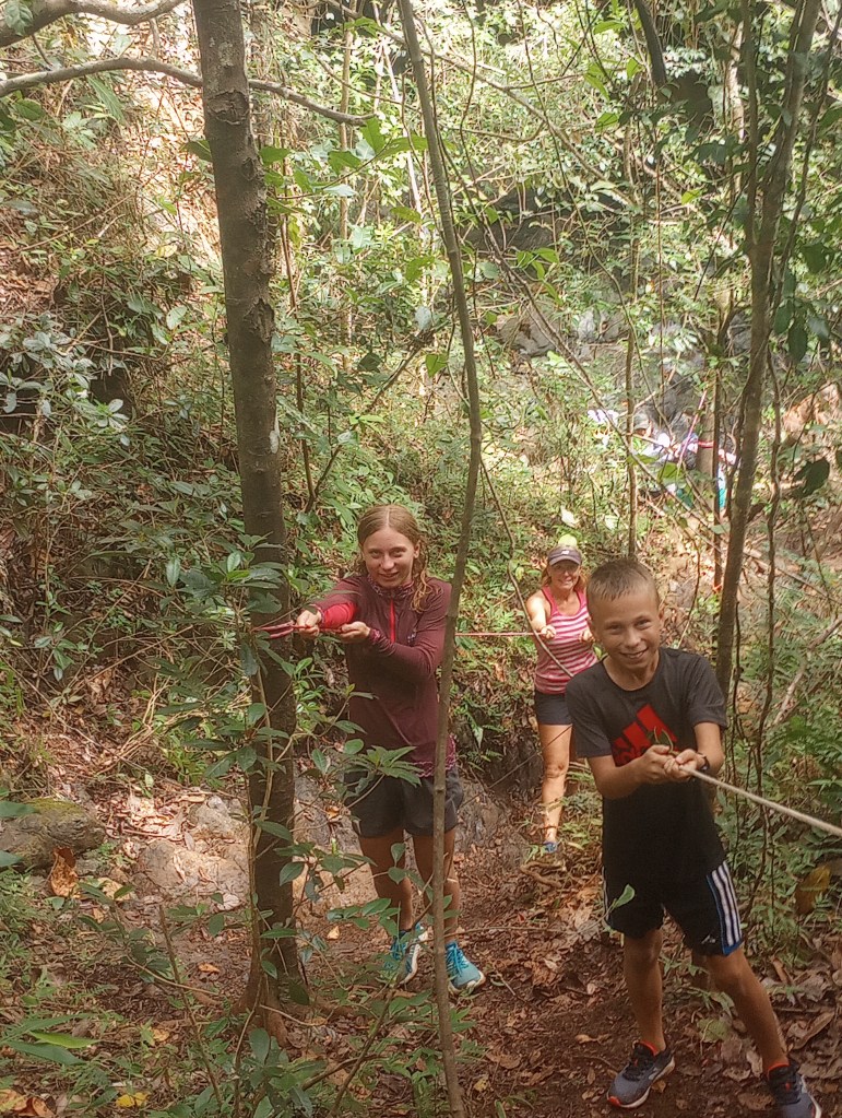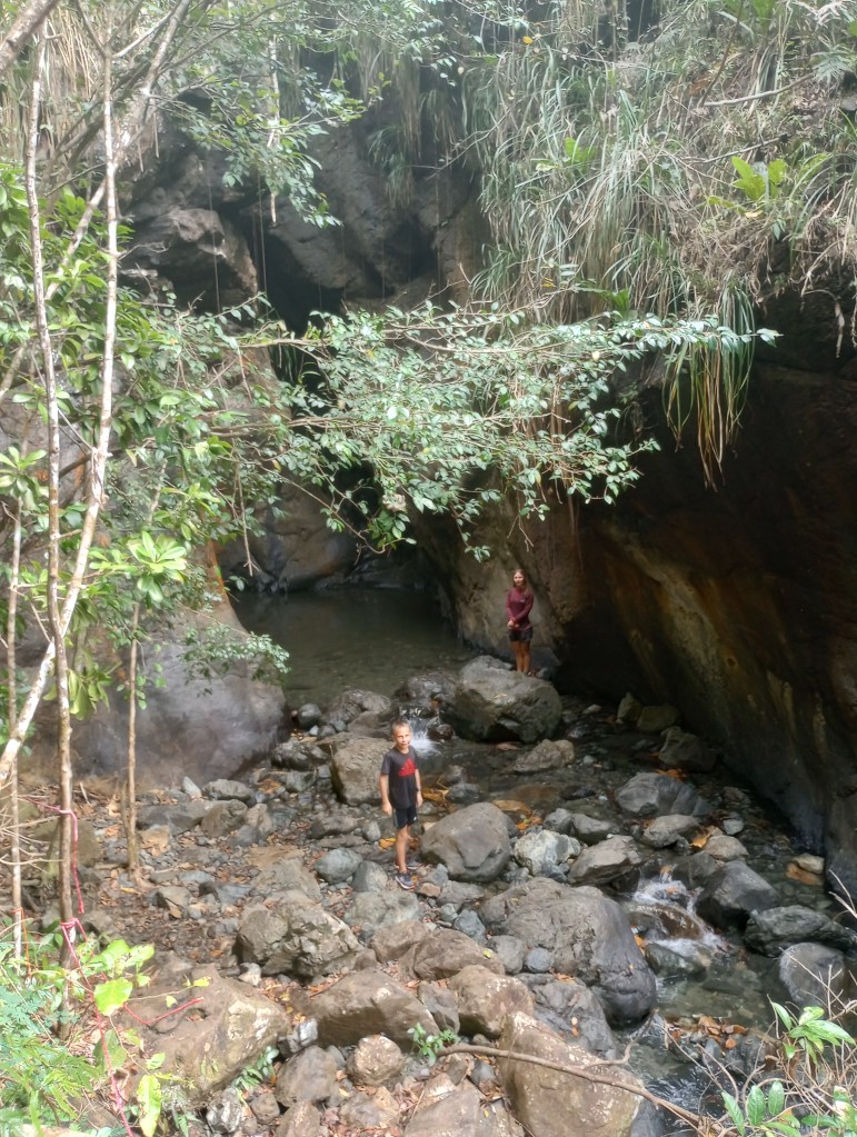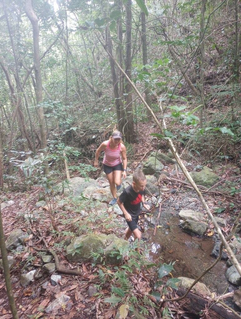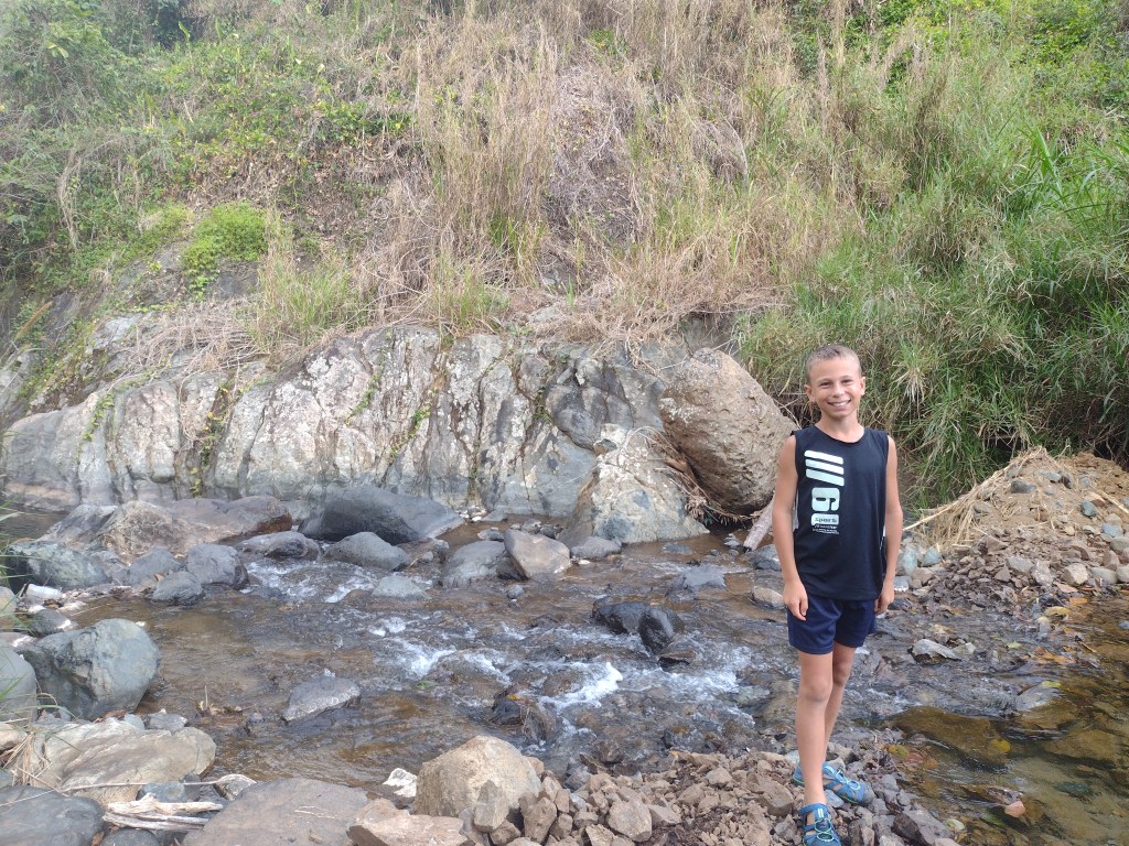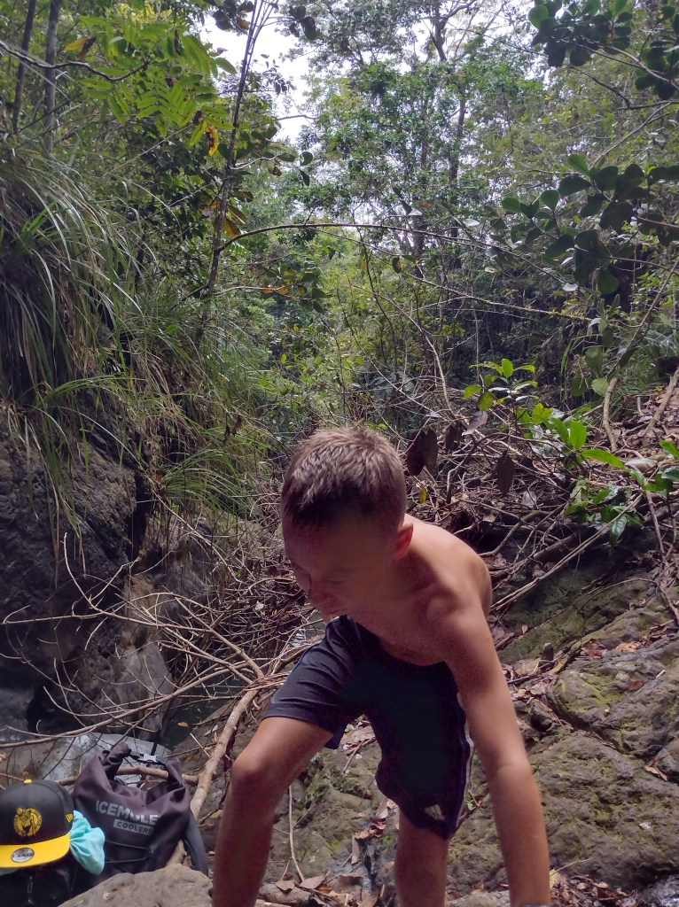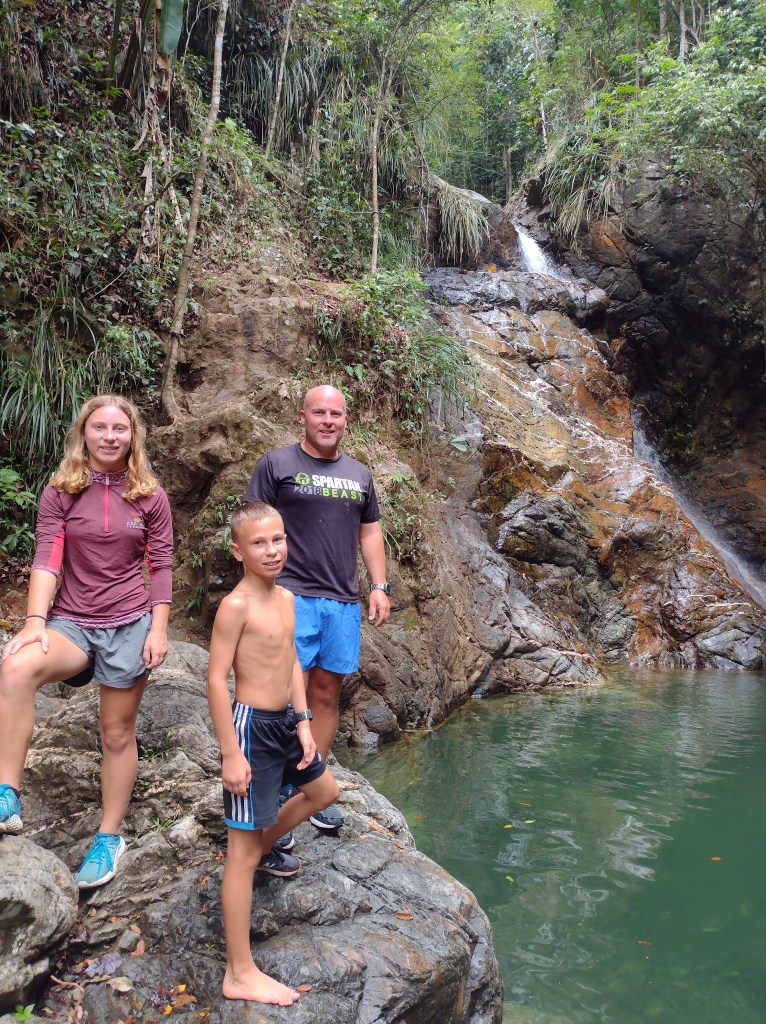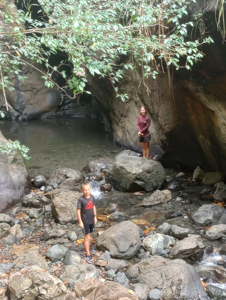 Our first day of exploring led us to the mountains and a hike to a waterfall. All four of us were really looking forward to big, green trees and walking on brown moist dirt (NOT SAND!!) The thought of hearing and seeing a freshwater creek with a small waterfall sounded even more delightful. The mountains were a short drive from the marina and the trailhead was easy to find. It was a Thursday late morning and there were at least three or four other cars in the parking lot. As soon as we opened the car doors all four of us basked in the cooler, damp and shaded air. We all immediately fondly recognized the scent of a forest. Each of us knew that we missed the sounds, scents and feel of a forest but none of us realized just how much until we were back amongst the trees. The Alltrails app that we used to find the trail described this trail as challenging. The four of us were so happy to be in a forest that we did not even notice the challenging terrain or steepness of the trail. After about an hour and a half of hiking we found the creek. And the creek was magnificent! It is really hard to put into words how wonderful it was to see flowing fresh natural water. After four months of dry, sandy wind, swept islands, this small mountain creek was a true treasure to behold. We followed the creek up another ½ mile or so to a large outcropping of rocks and the beautiful waterfall. Our family is from the PNW and waterfalls can easily be visited, so as far as waterfalls go, on a scale of 1-10 this one would rate about a 4. However, in that moment as we all four stared up at the fresh cool water falling into the wonderful pool below, there was not a more beautiful waterfall on the planet.