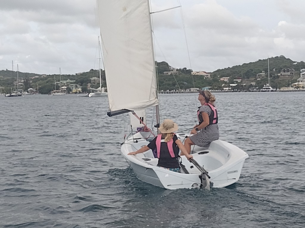 The next island heading south was the former English Island of Antigua. On the island are many old forts from the years that England and France fought over the Caribbean Islands. One of the main attractions on the island is Admiral Nelson’s Dockyard. It is now a national park with a well preserved example of a working dockyard of the 1800s. My parents flew to Antigua just a few days after we arrived. After settling into their hotel we began exploring the island. The dockyard was our first stop. It was truly an amazing experience. We really got the sense of what life was like during that time. There is a small museum on site and many buildings beautifully preserved and explanations of their use during the period. During my parents visit Victoria and Alexander soaked up their time with their grandparents. They spent most every night at the hotel. Alexander would sing many of the songs from Hamilton for grandma and Victoria and Grandma would have epic bananagram games lasting into the night. During the day Ashley and I would arrive back at the hotel and we would all load up into our van and explore the island. We swam at different beaches in the warm clear waters of the Caribbean. We hiked to the top of mountains. And we drove through fruit tree plantations. We also explored the ruins of many different fortifications from the colonial times of British rule. Ever since Alexander became comfortable sailing his boat by himself, he has wanted to take Grandpa Murphy sailing. There is a small sailing school in the bay that we anchored Samadhi that rents small sailboats. So for our last day with G & G Murphy we rented two small sailboats. Alexander took Grandpa Murphy sailing around the bay. The boats were great to sail and Alexander had a great time showing his grandparents how he could handle a boat on his own.
